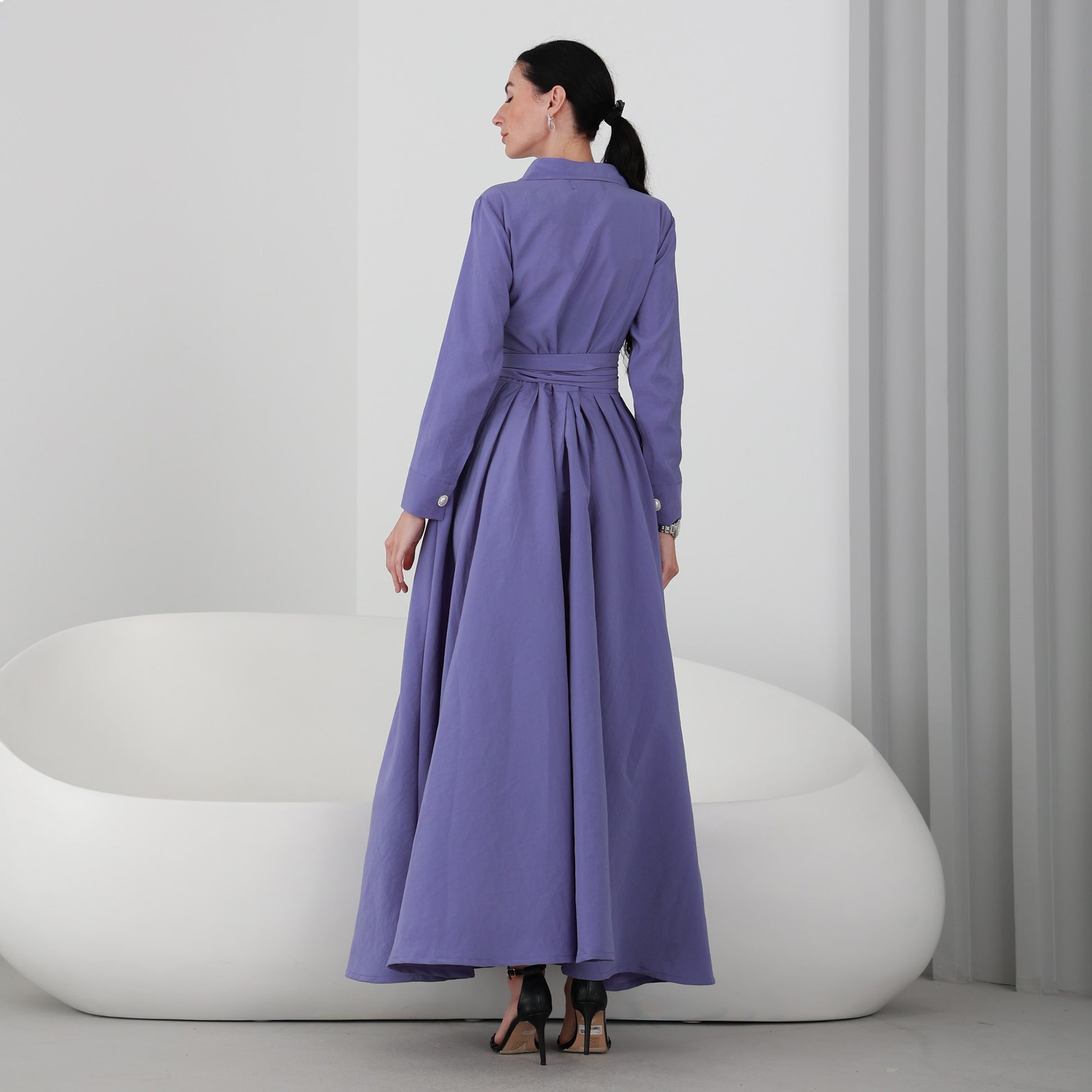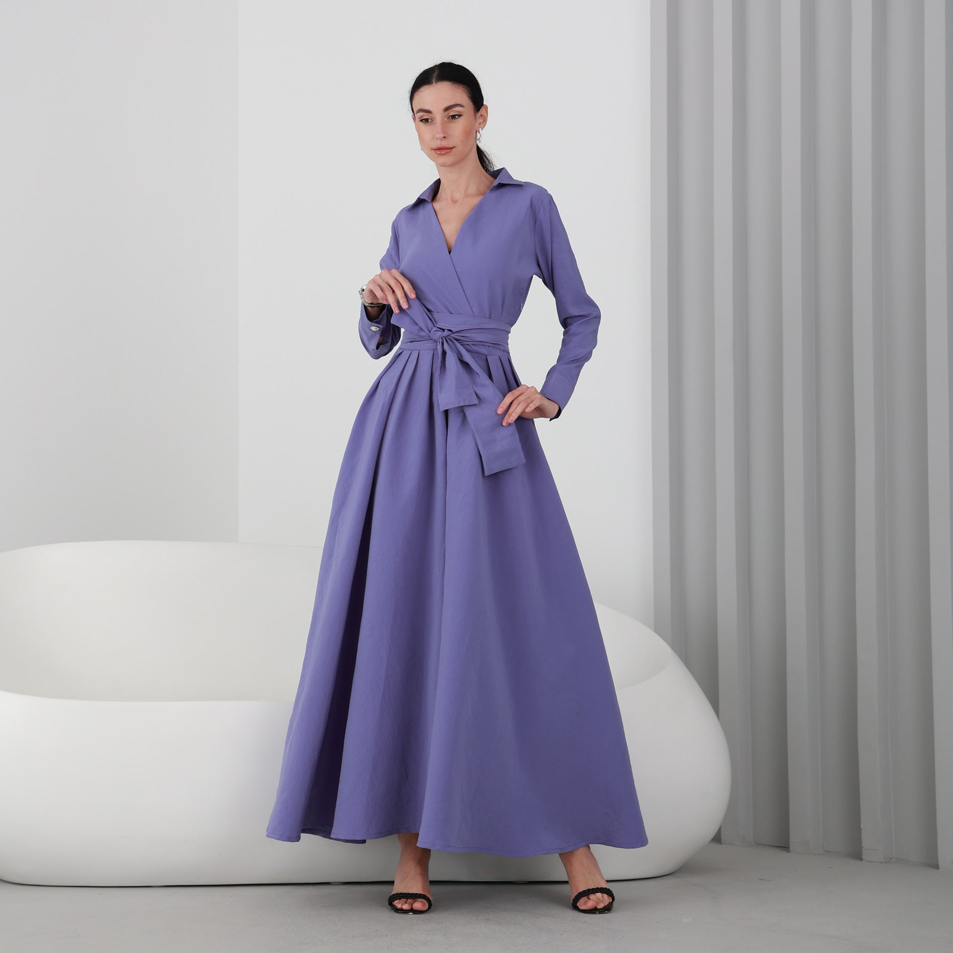 This elegant long dress is the perfect choice for your next formal occasion. The rich purple color is both striking and sophisticated, and the dress features a flattering silhouette that will make you feel confident and beautiful all night long.