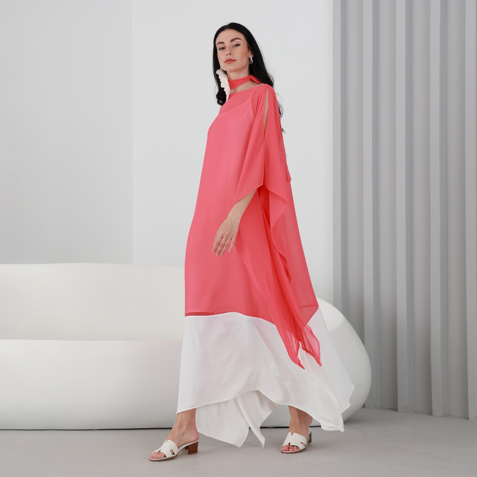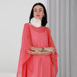 قفطان ليلي يتميز فستان القفطان هذا بقماش شيفون أحمر .