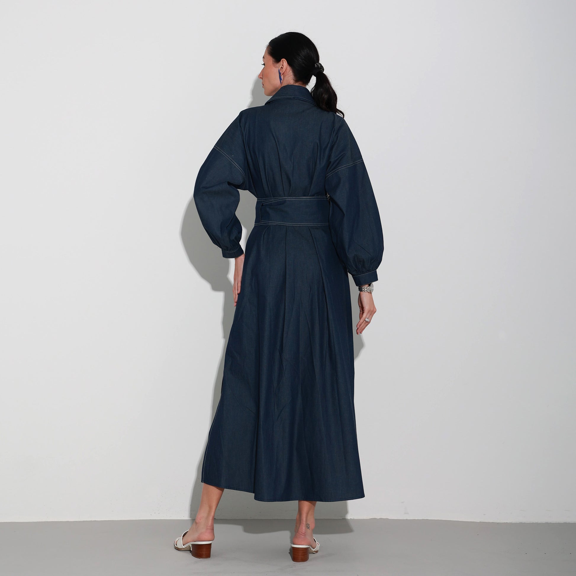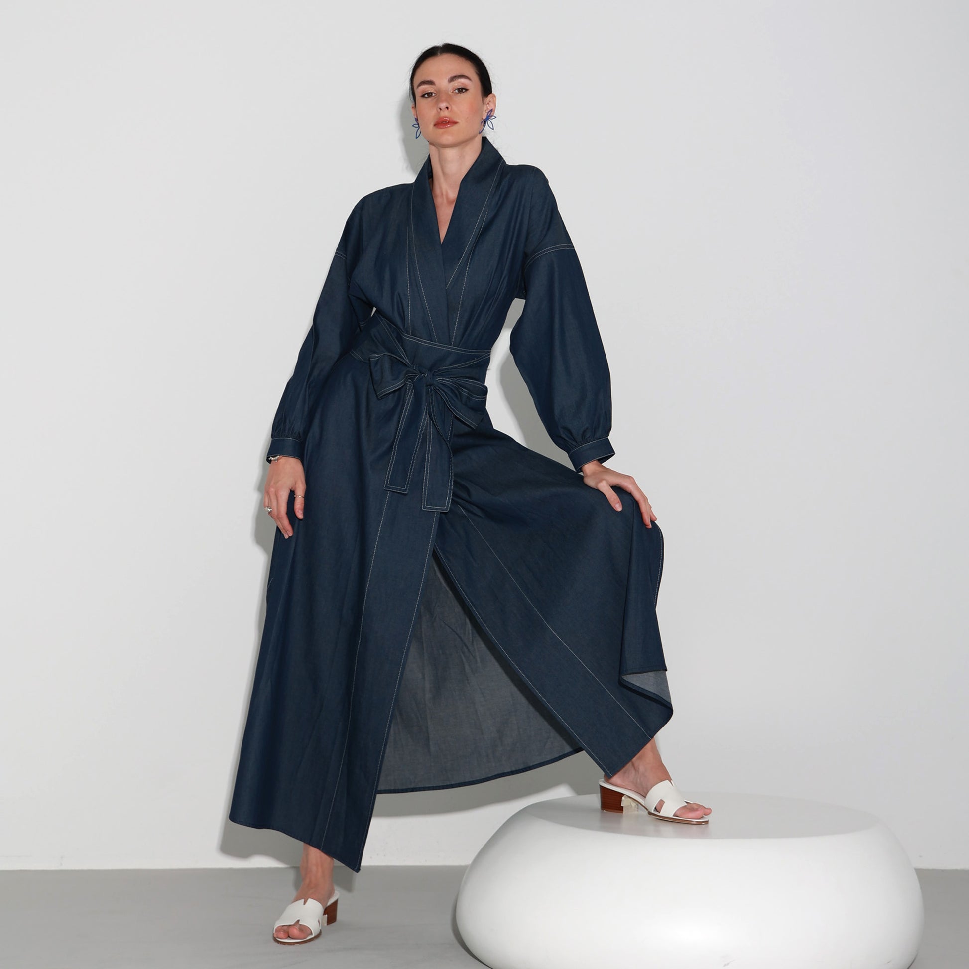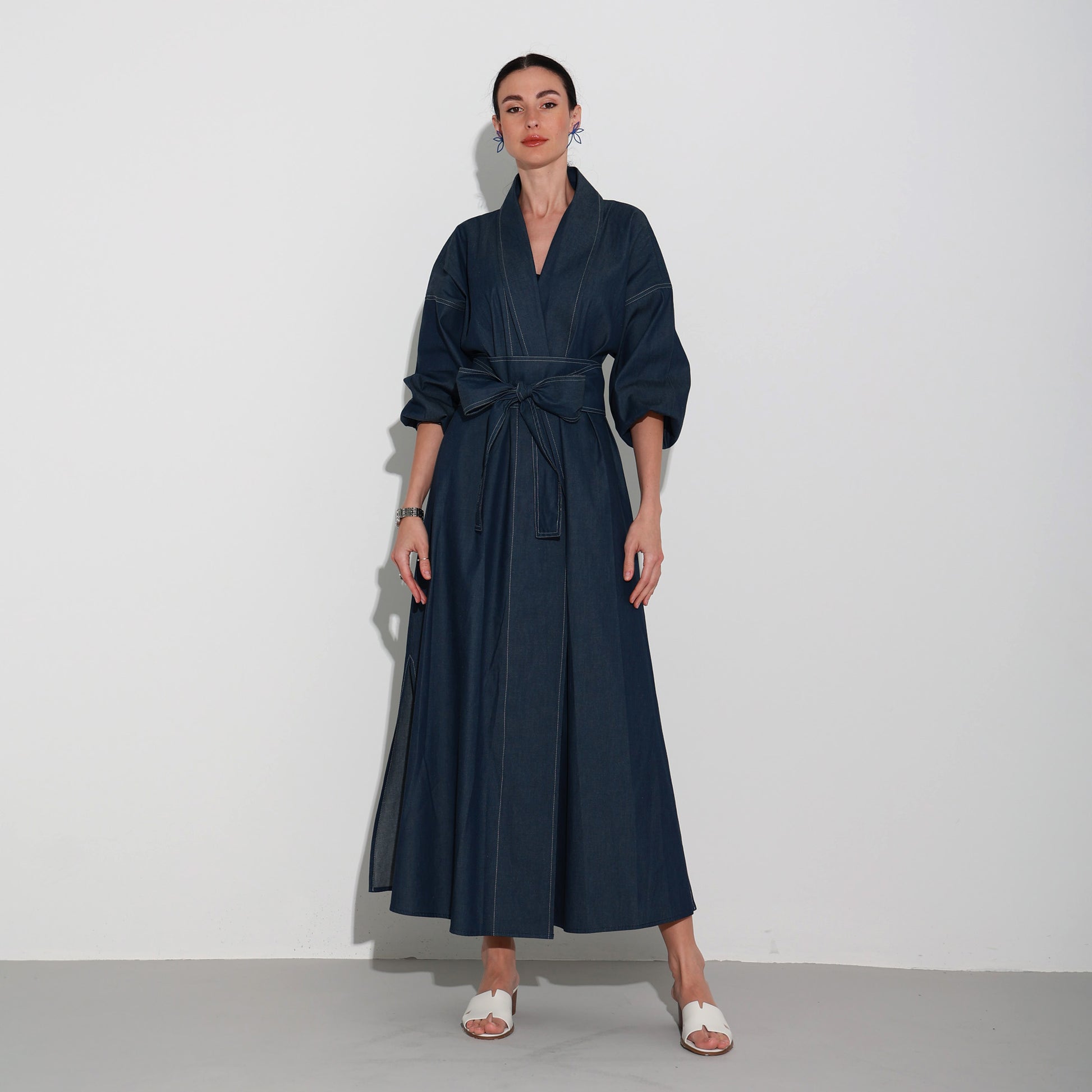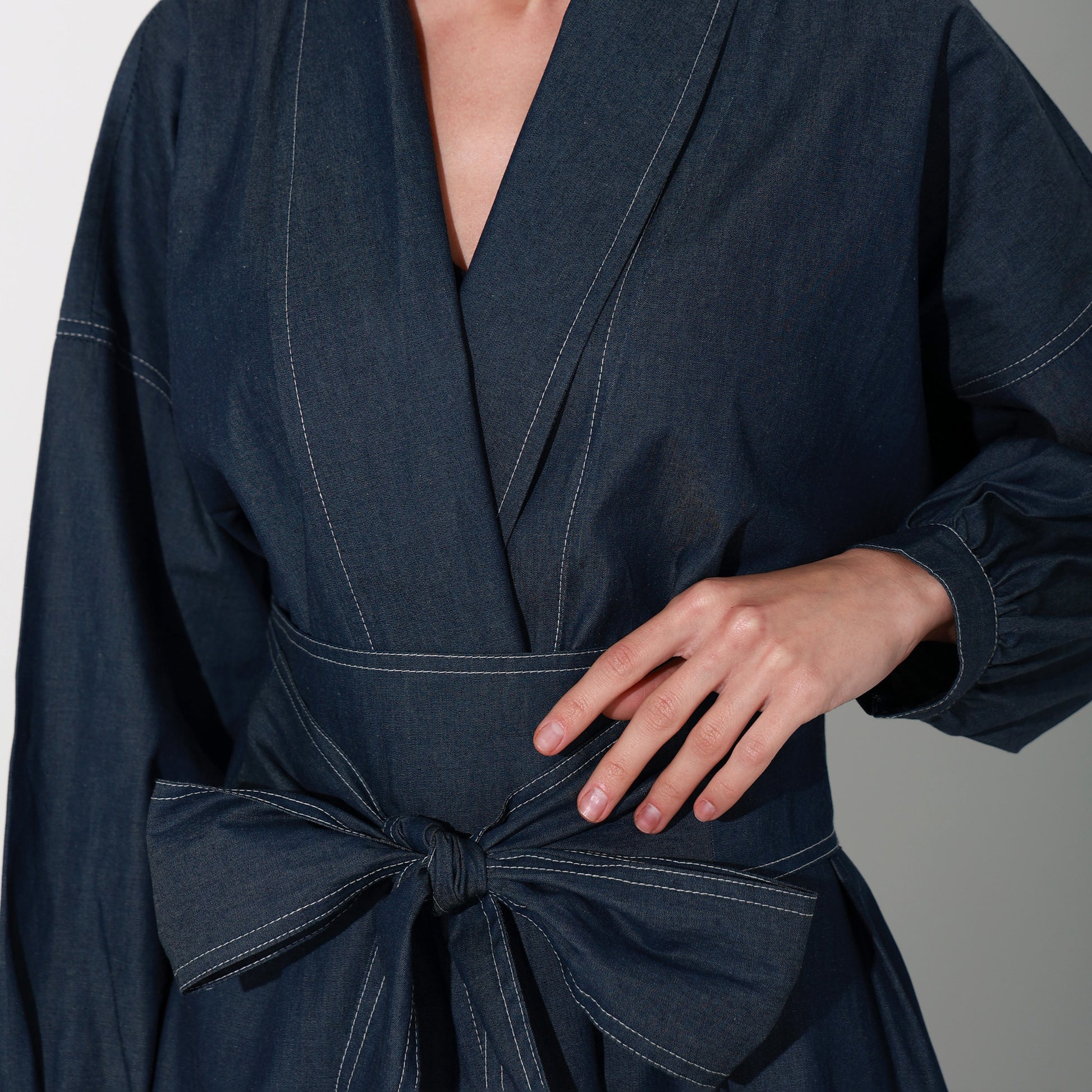 Our Denim wrap Bow-Waist Dress effortlessly blends sophistication with relaxed charm. Crafted from Light high-quality denim, this dress showcases a flattering silhouette and a chic detail with the belt on the waist, adding a touch of feminine elegance. Versatile and stylish, it can be dressed up for any occasion. Embrace timeless style with our Denim Bow-Waist Dress, making you feel confident and fashionable wherever you go.