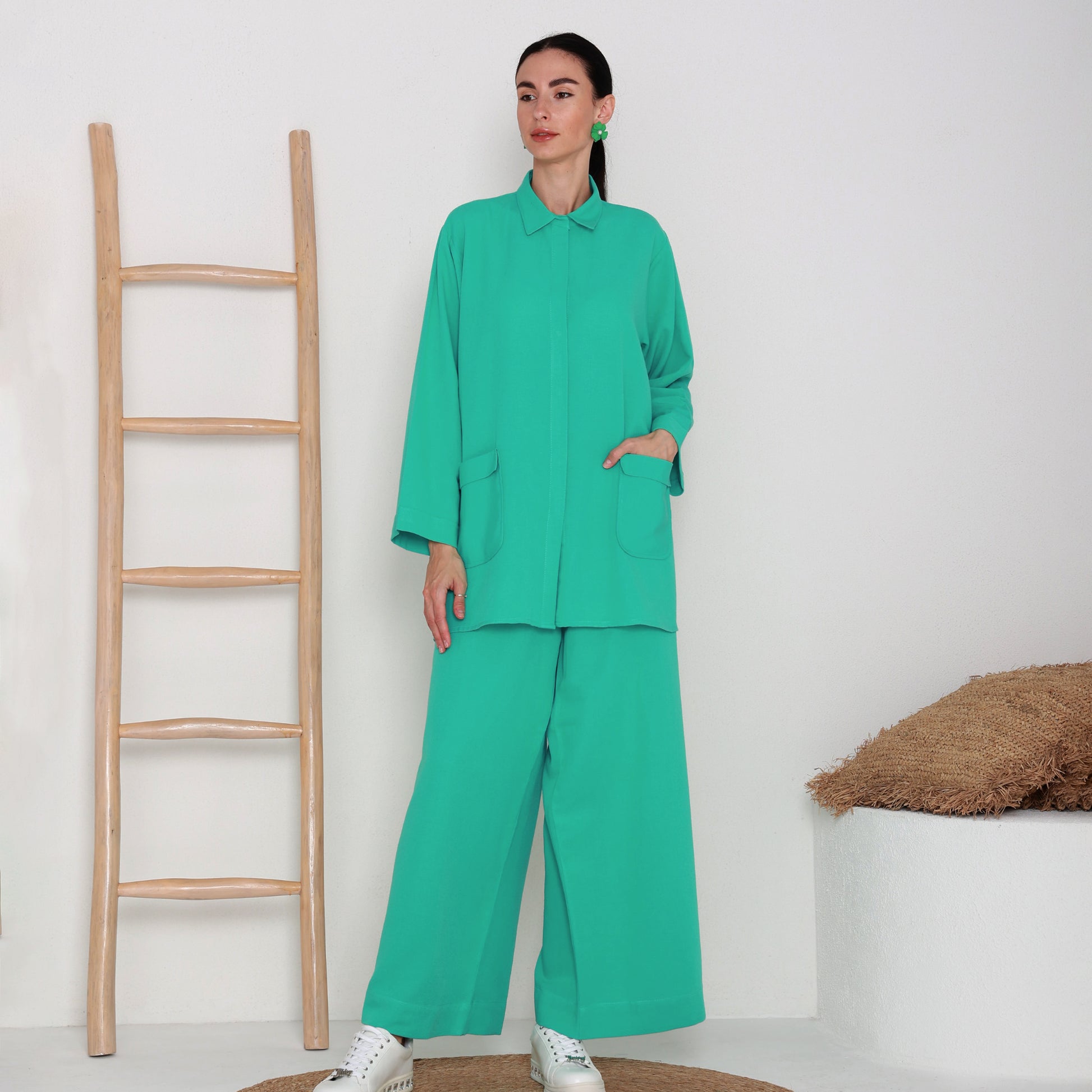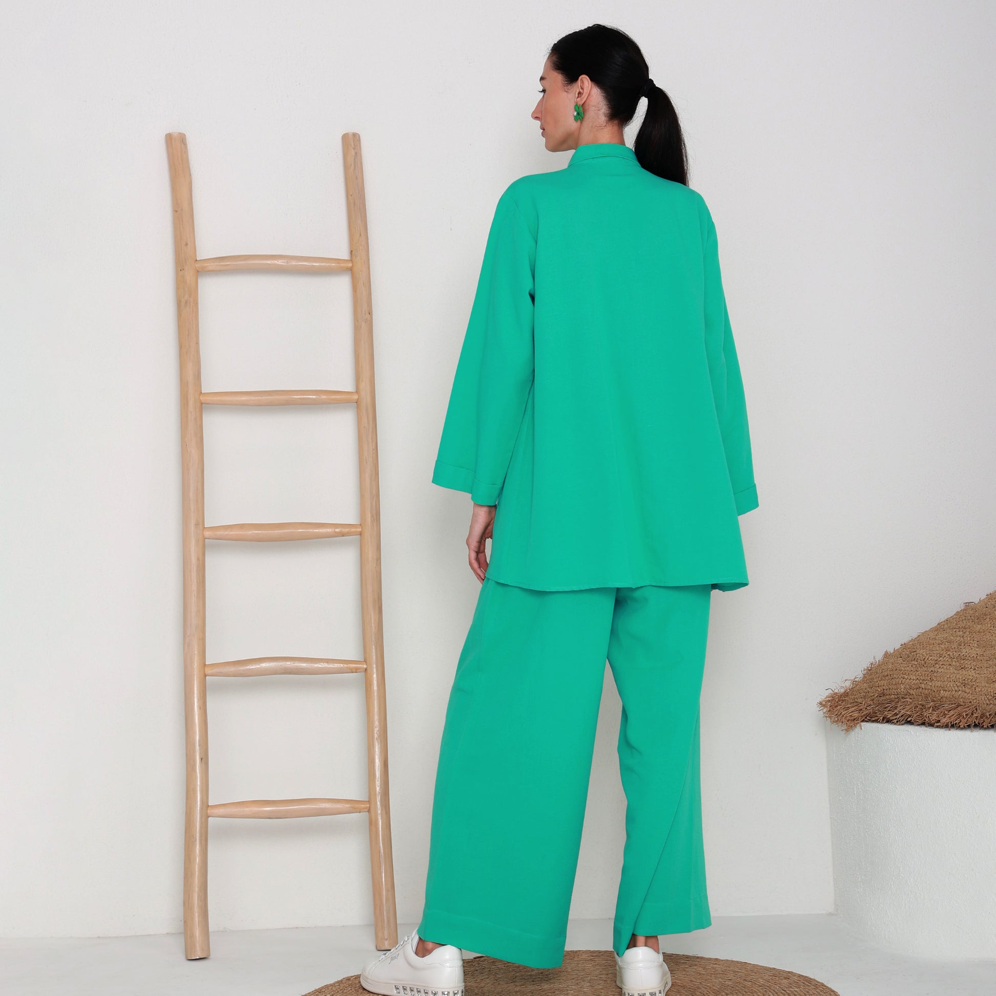 Crafted from Pure Ketan, this flattering and versatile outfit includes a Wide cut top, and Wide cut pants. Soft and comfortable.