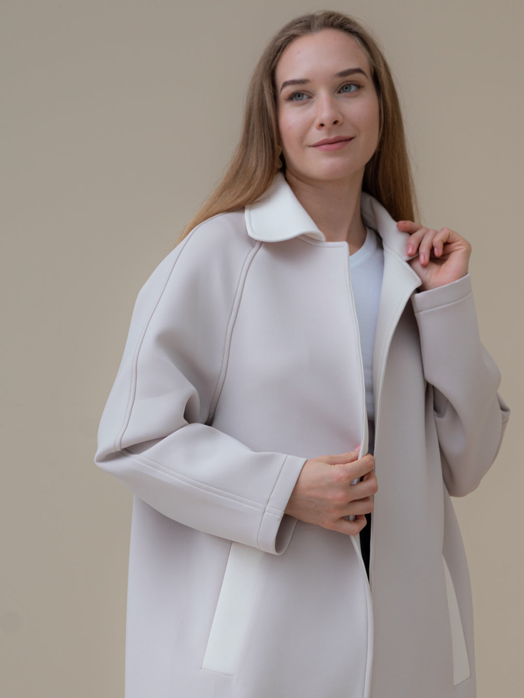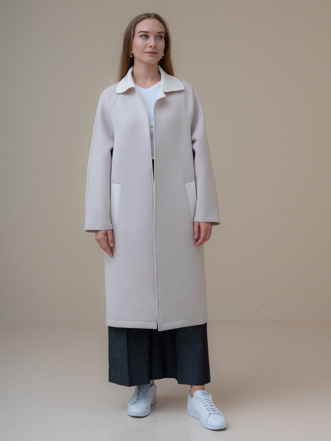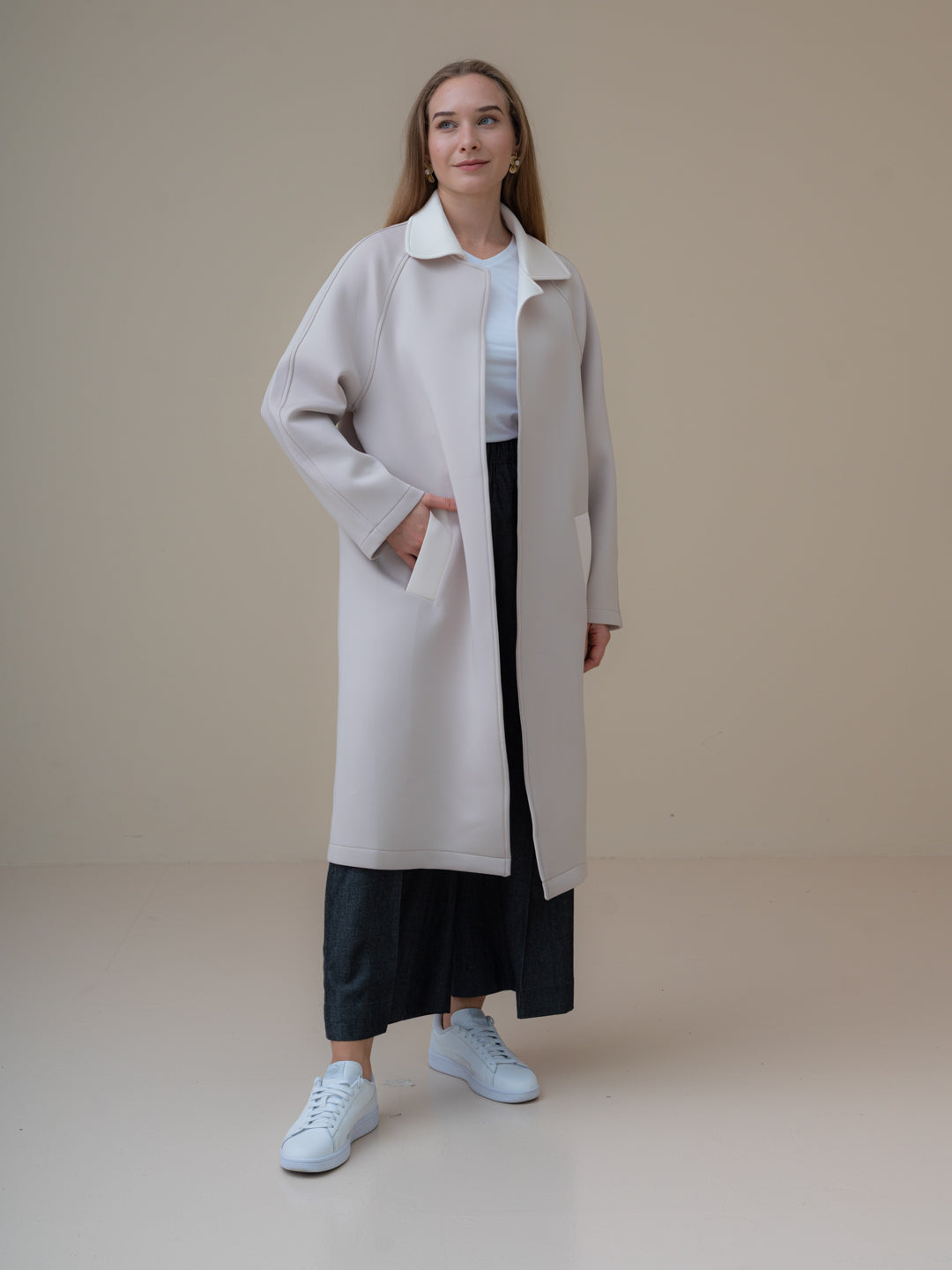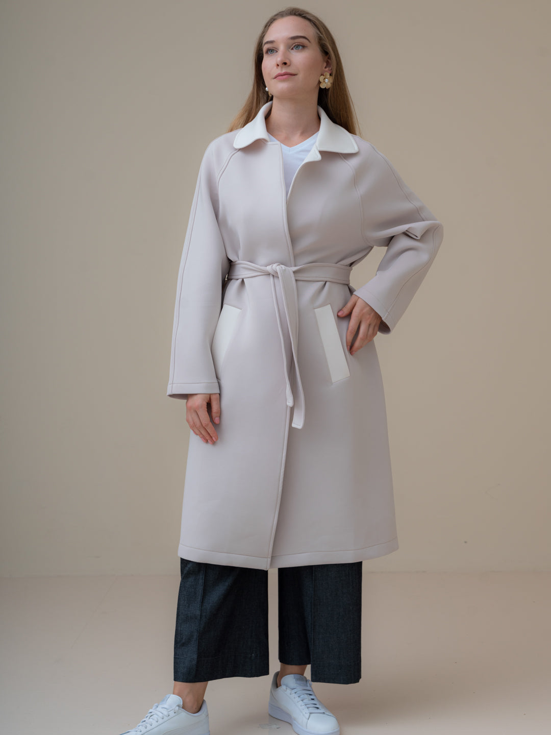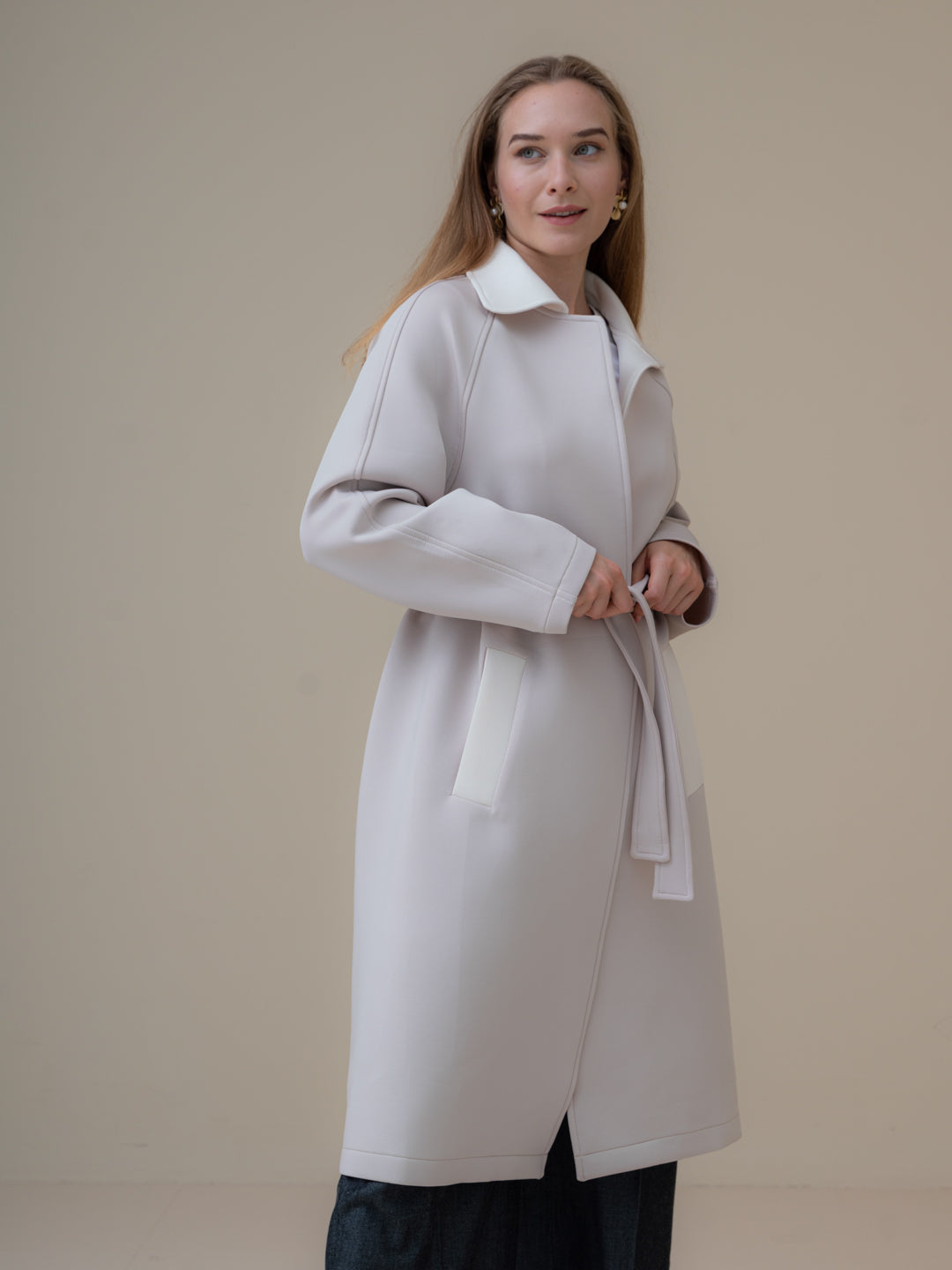 جاكيت اورورا الطويل مناسب للبرودة المتوسطة ,مصنوع من قماش برادا الستريتشي الخاص بنا. يعطي اطلالة دافئة وانيقة مع حزام لمظهر اكثر انثوية