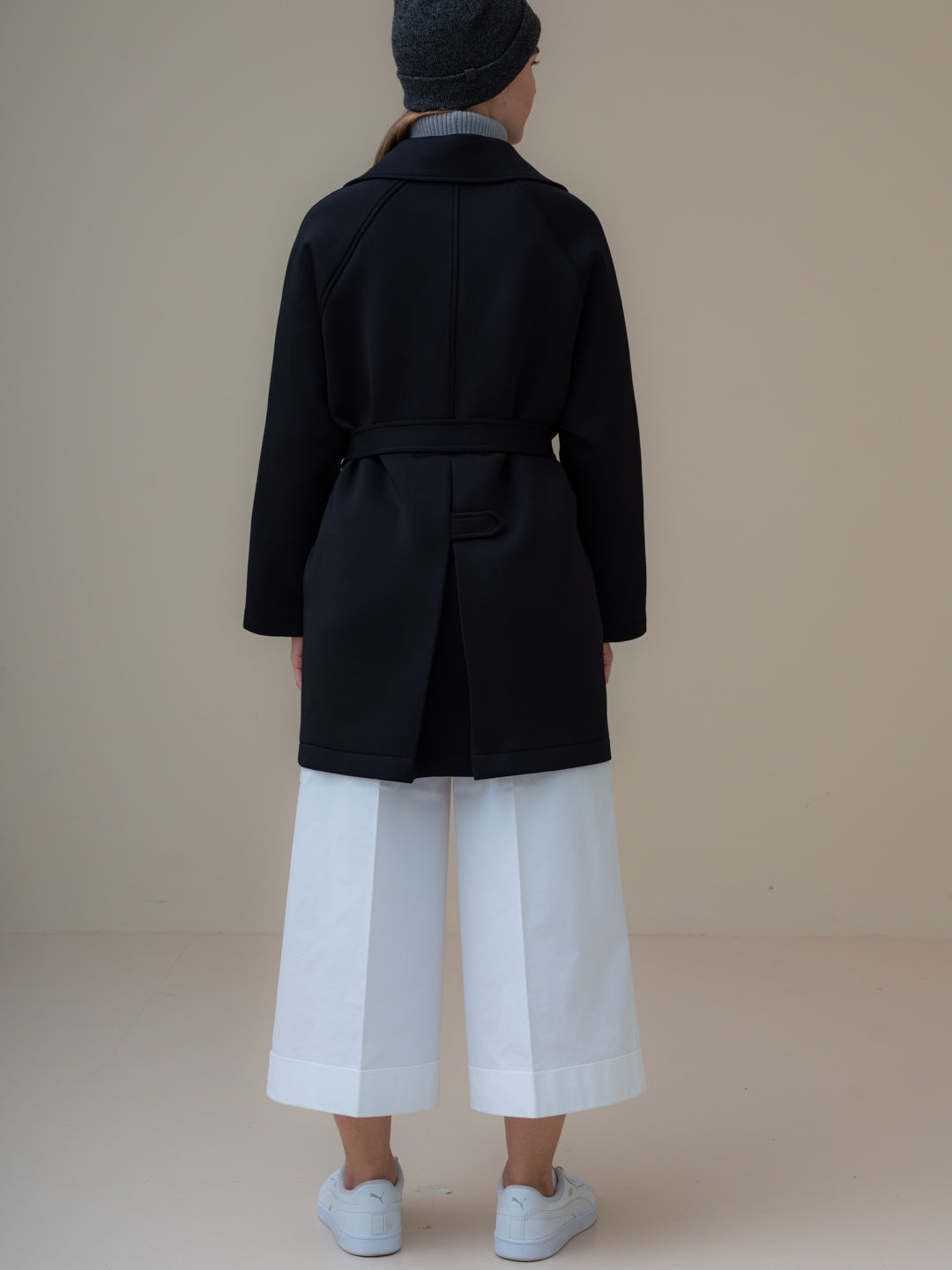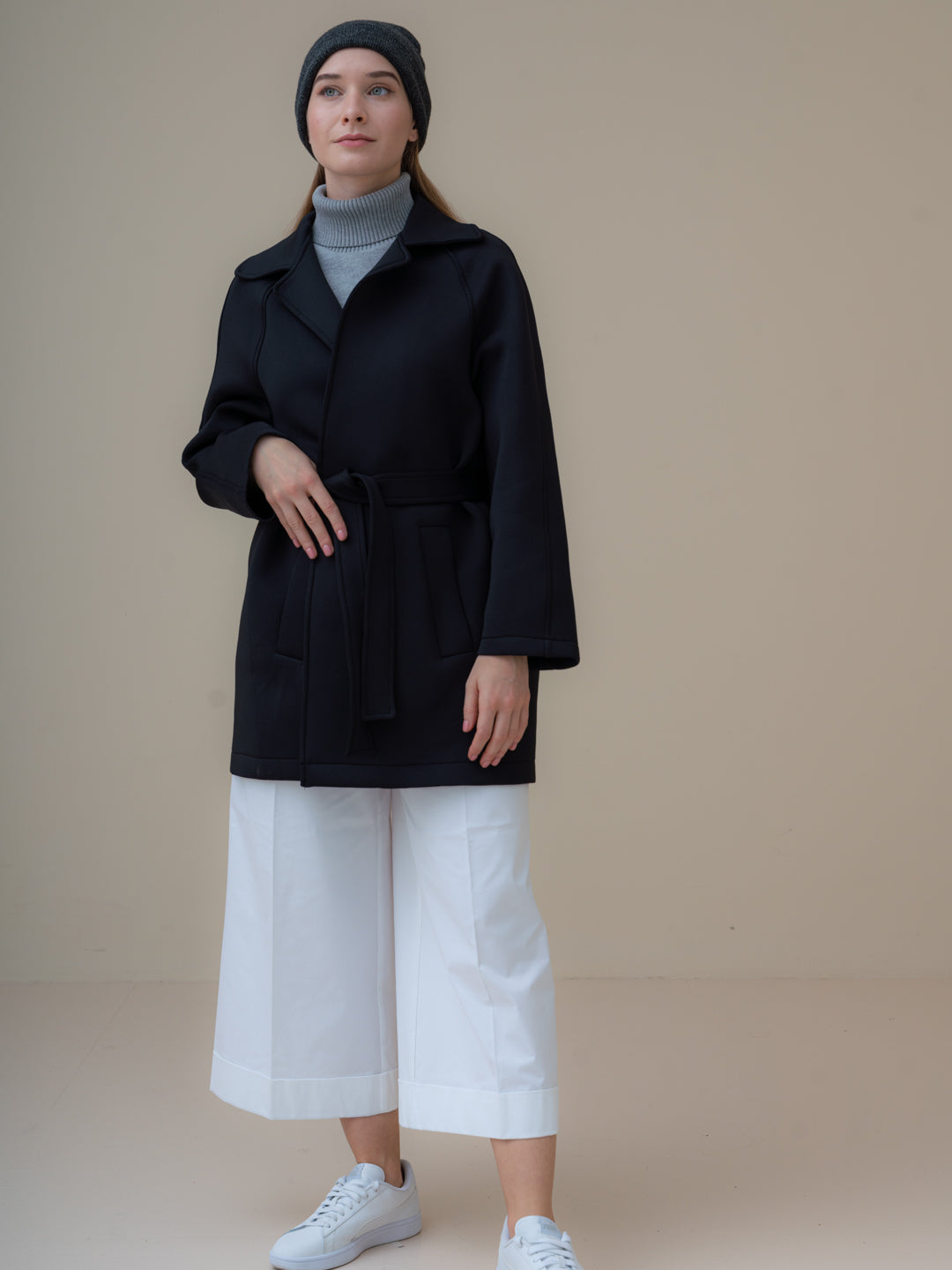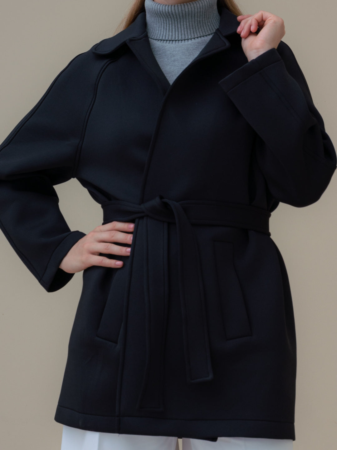 جاكيت اورورا مناسب للبرودة المتوسطة ,مصنوع من قماش برادا الستريتشي الخاص بنا. يعطي اطلالة دافئة وانيقة مع حزام لمظهر اكثر انثوية
