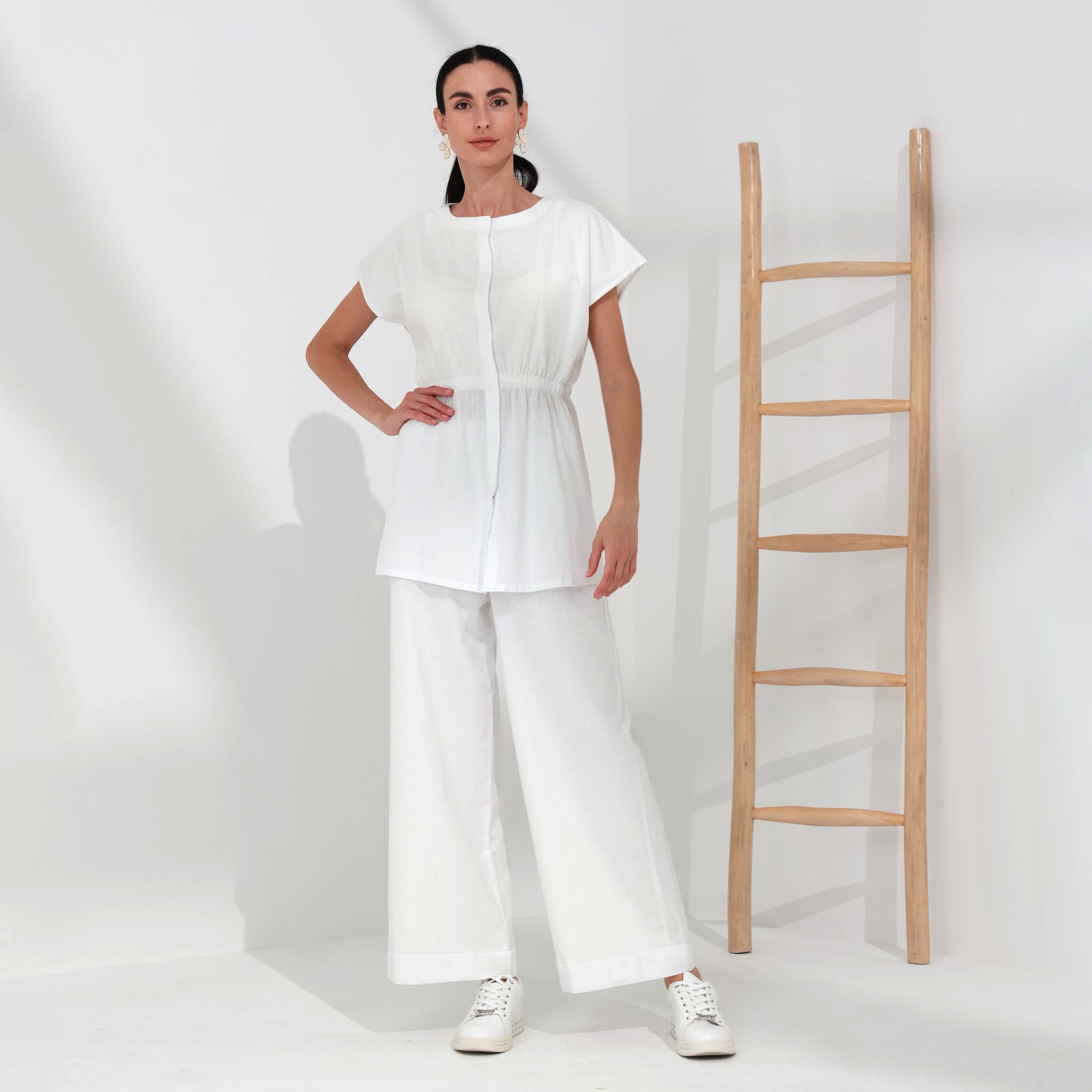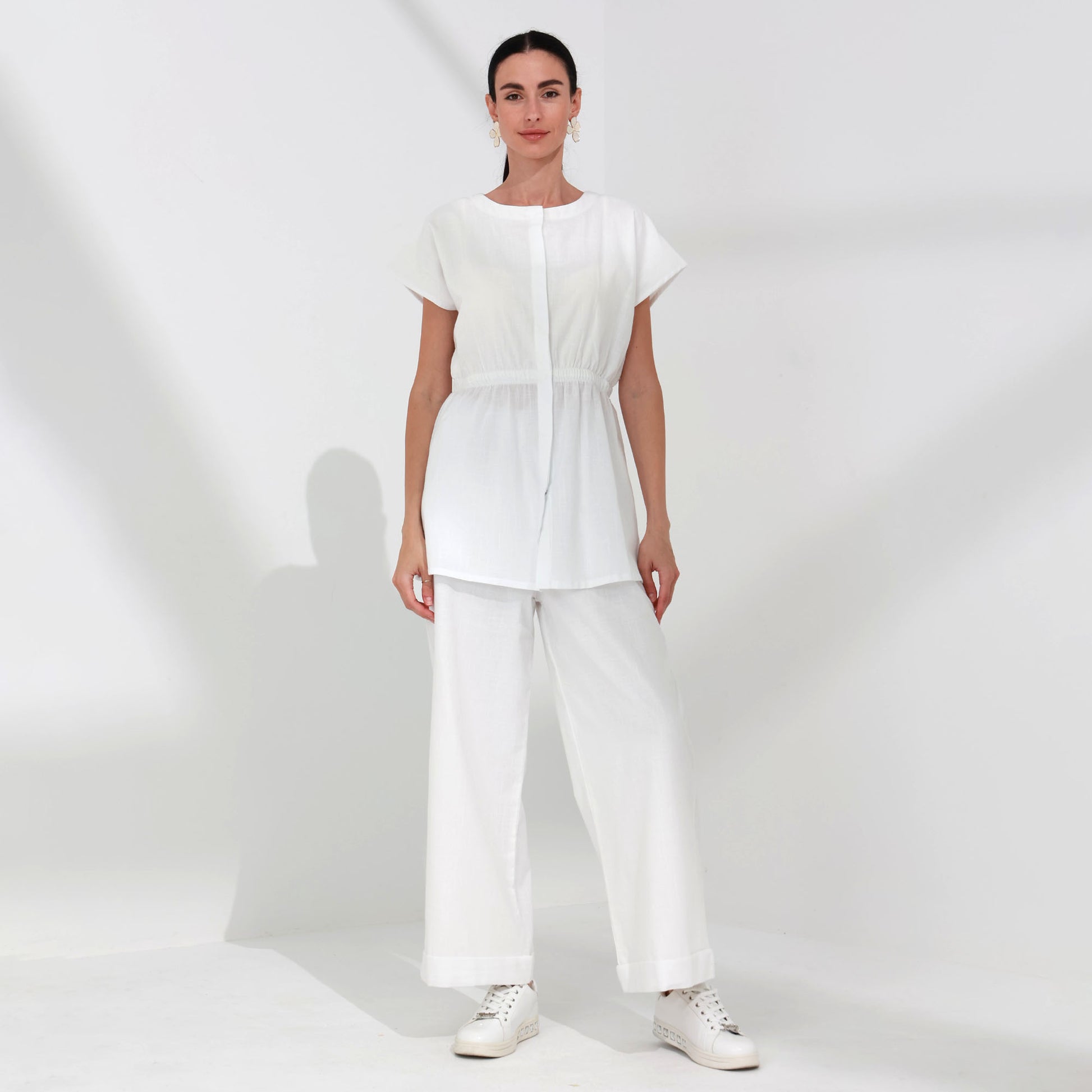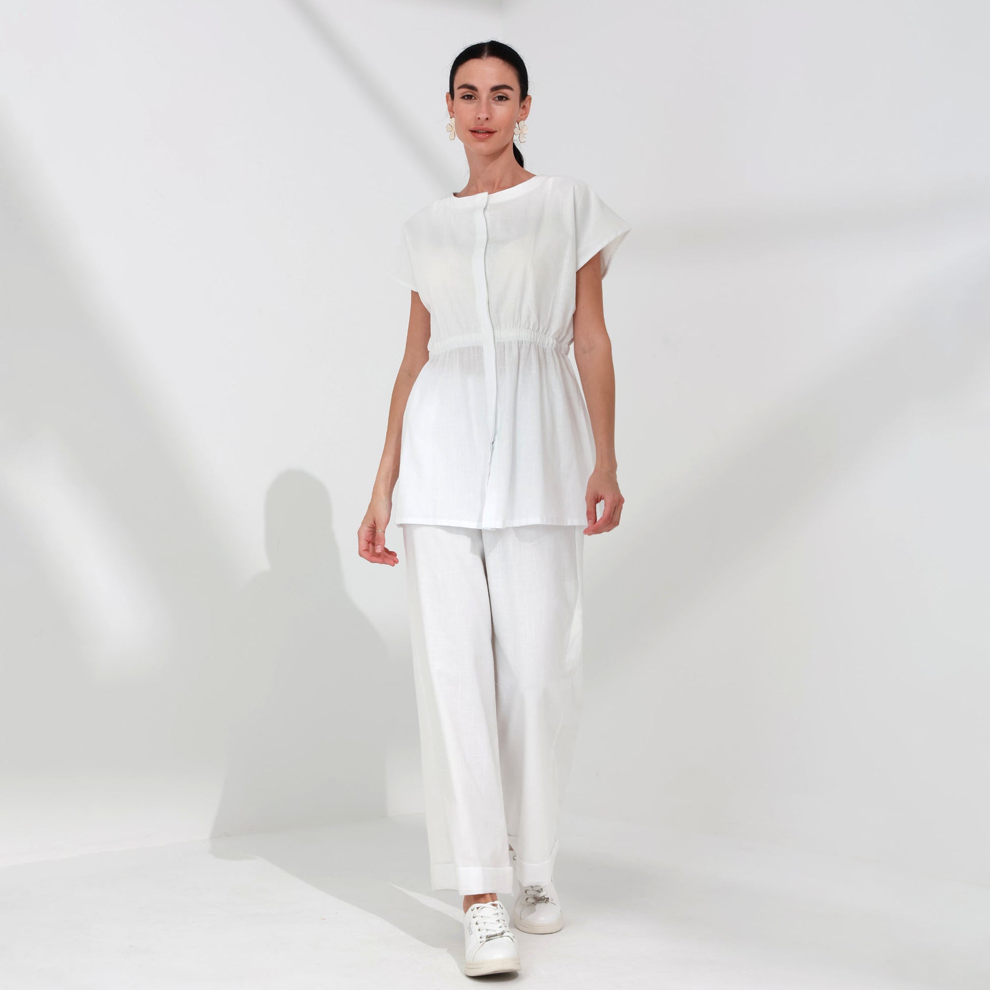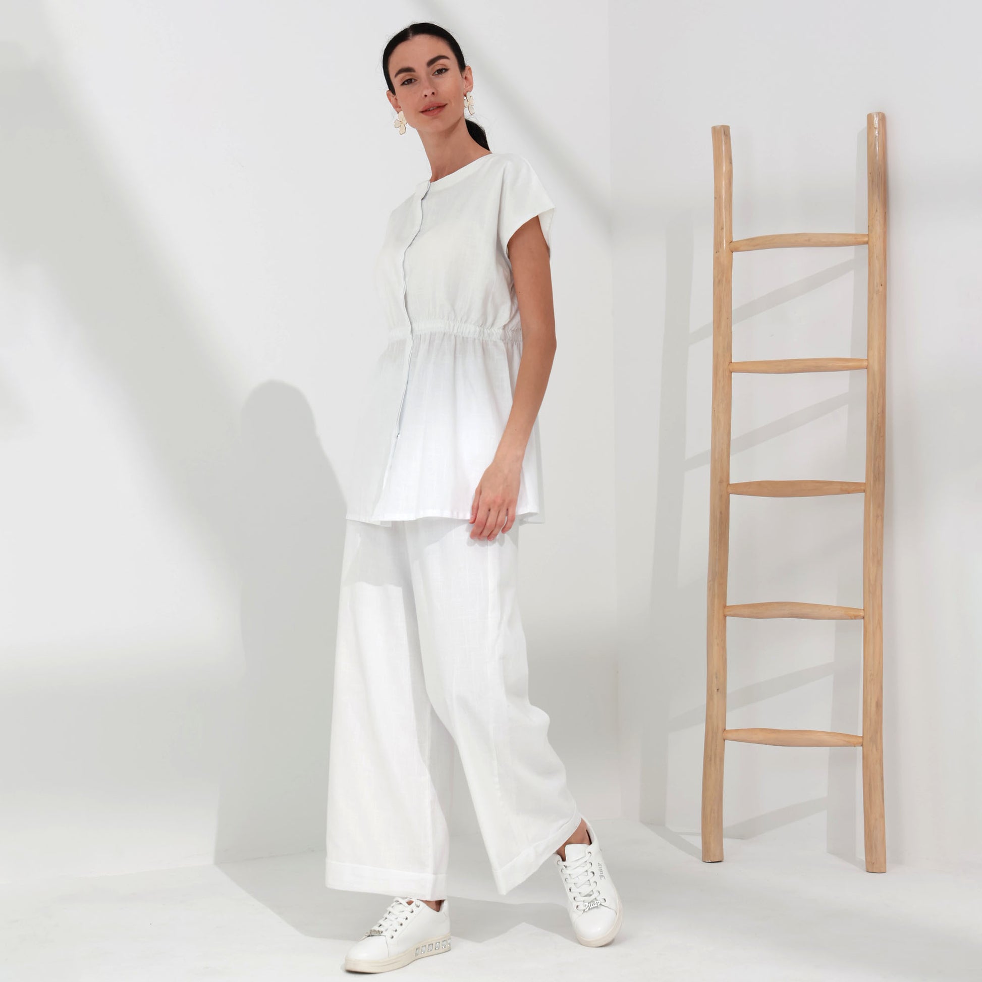 Purity Set offers a timeless and versatile ensemble comprising a comfortable shirt and trousers, both designed with understated sophistication in mind. Crafted from high-quality white linen fabric, this set effortlessly combines classic style with a relaxed aesthetic, making it suitable for daily wear.