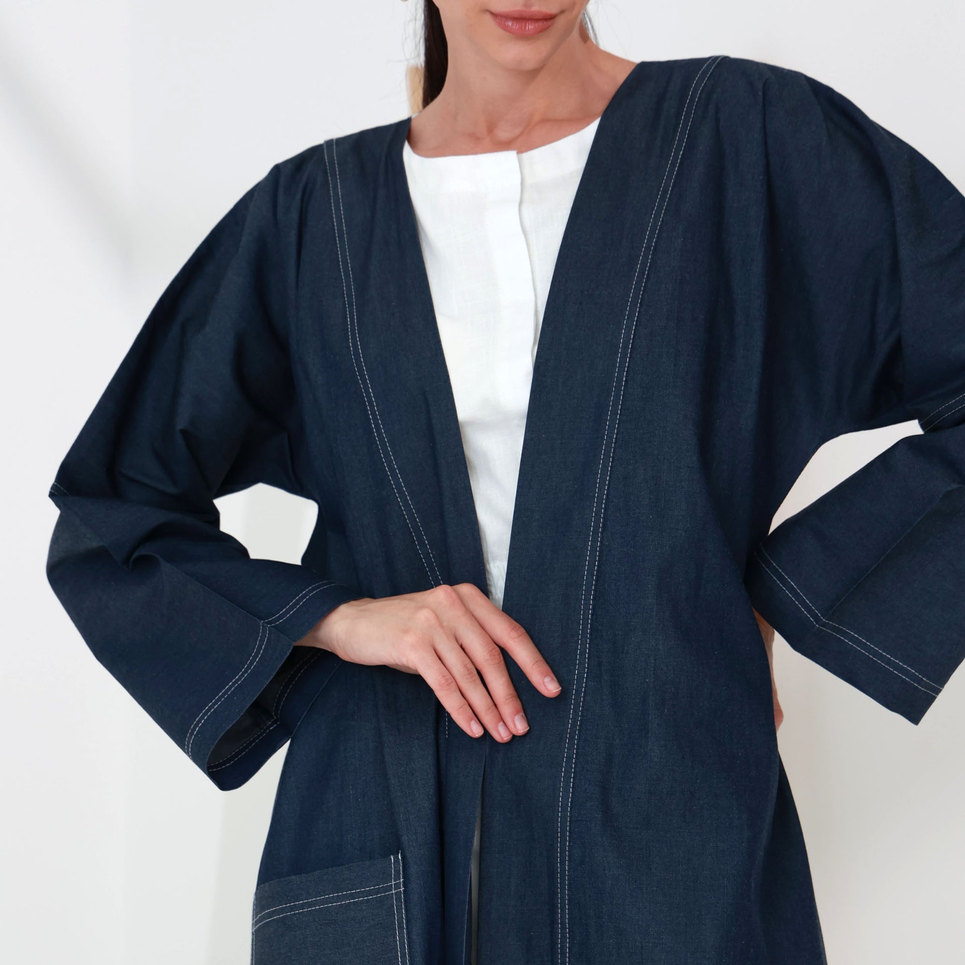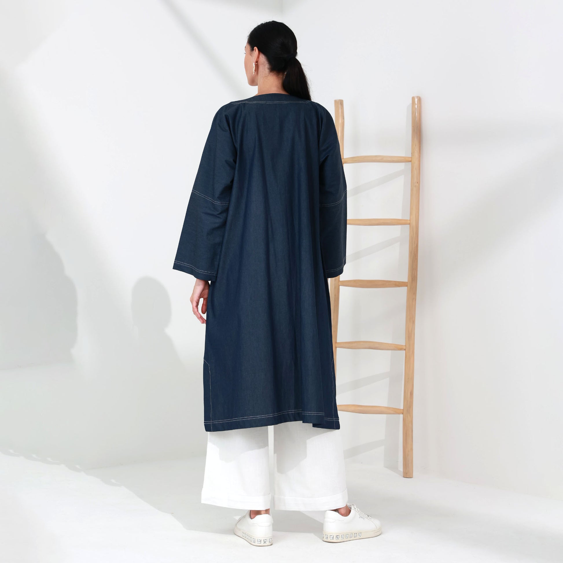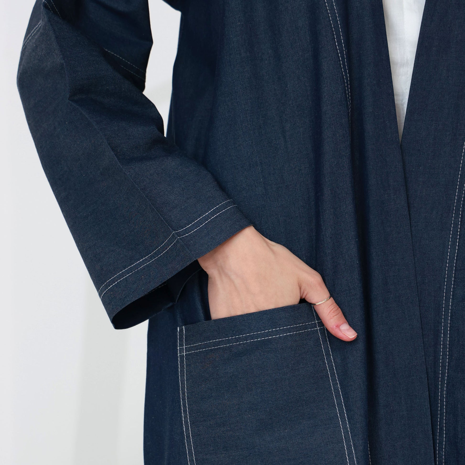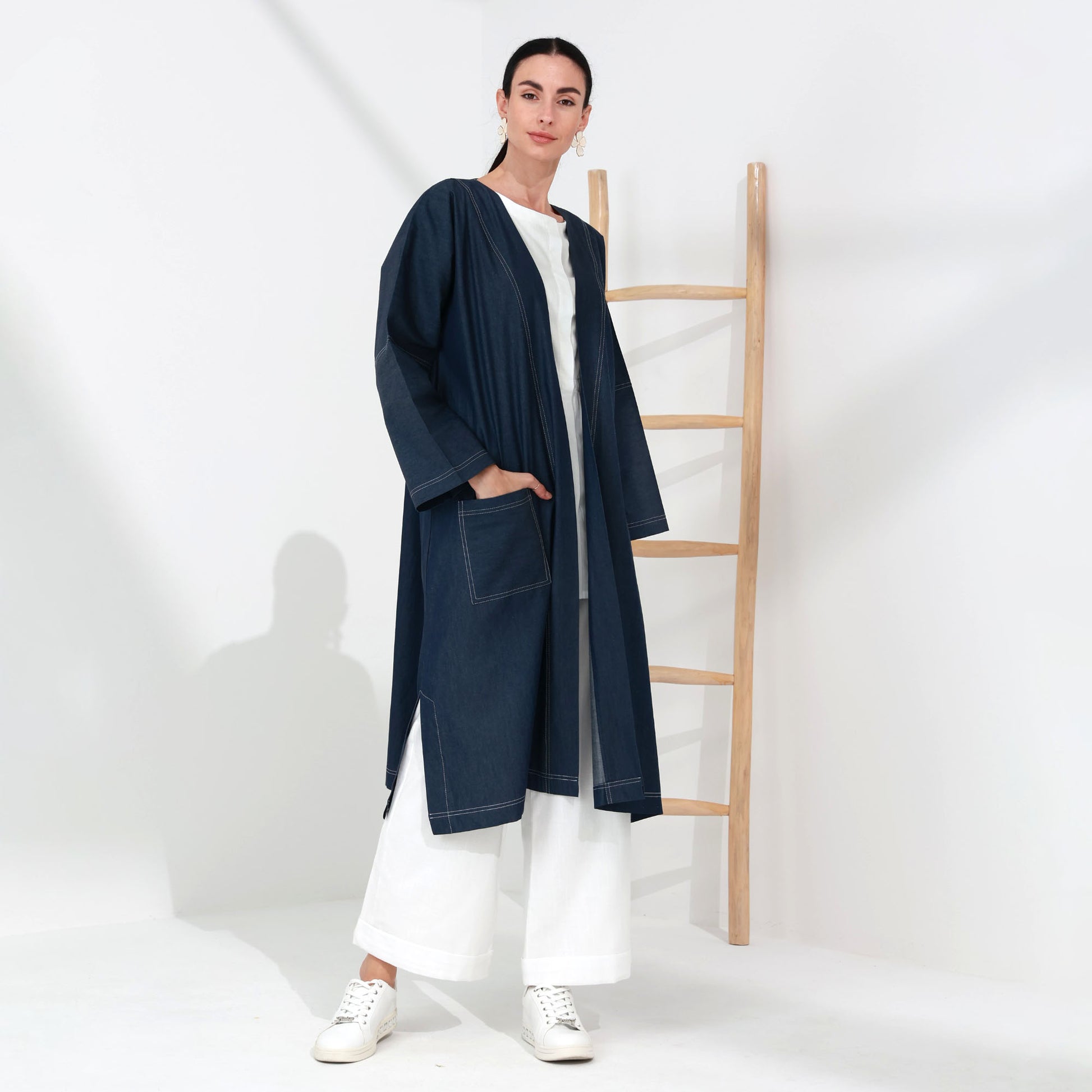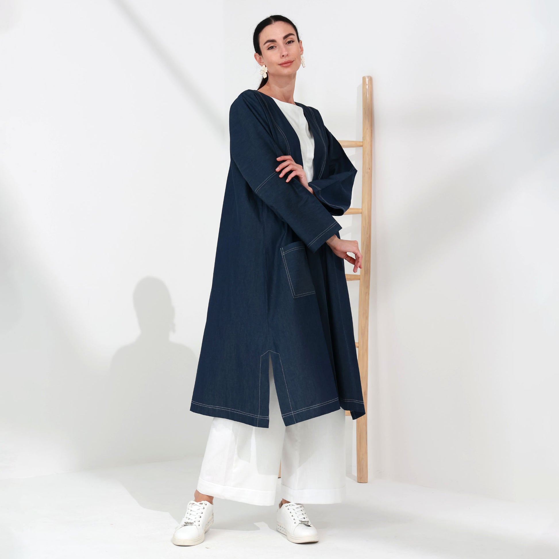 Our Denim coat - effortlessly blends sophistication with relaxed charm. Crafted from Light high-quality cotton denim, with side pockets.