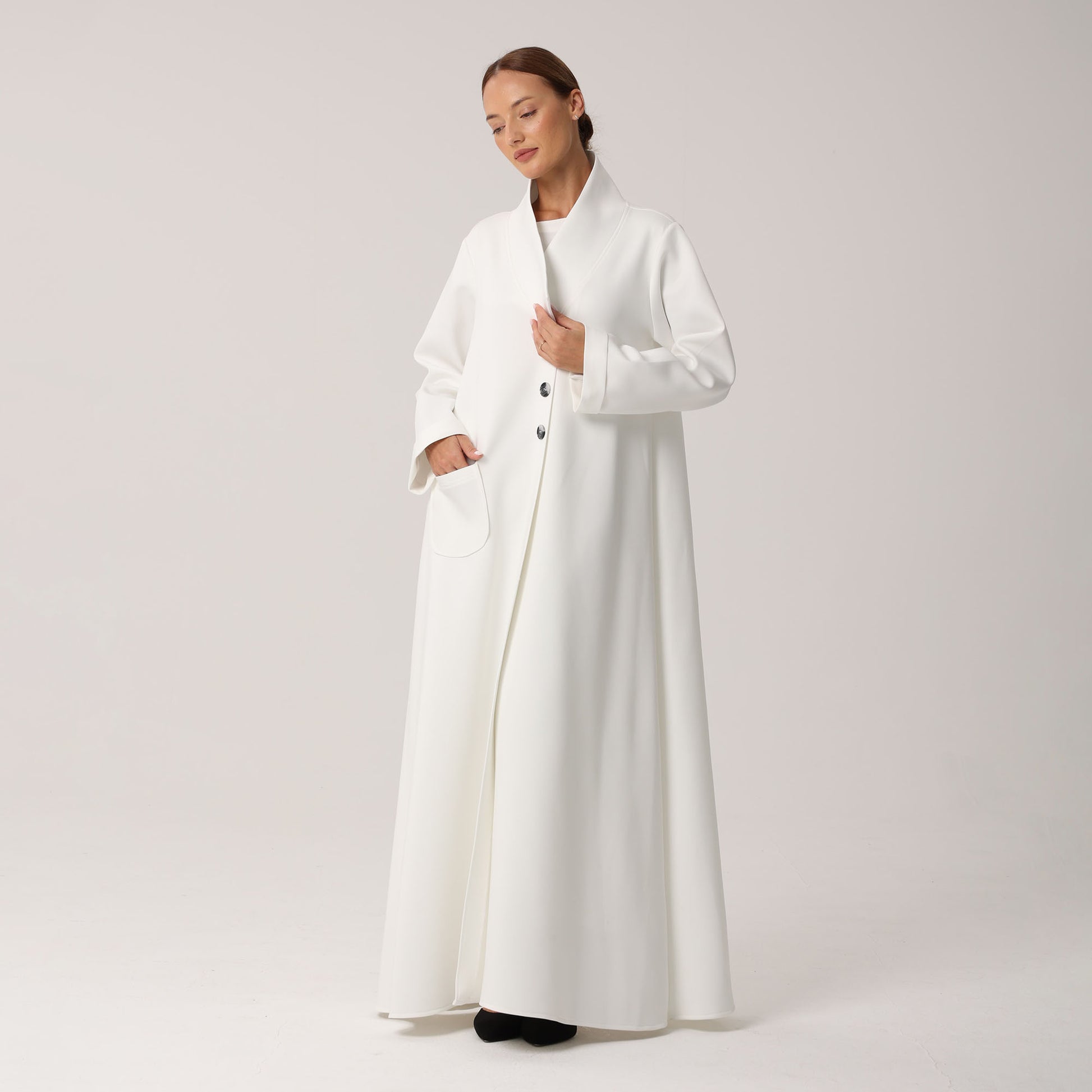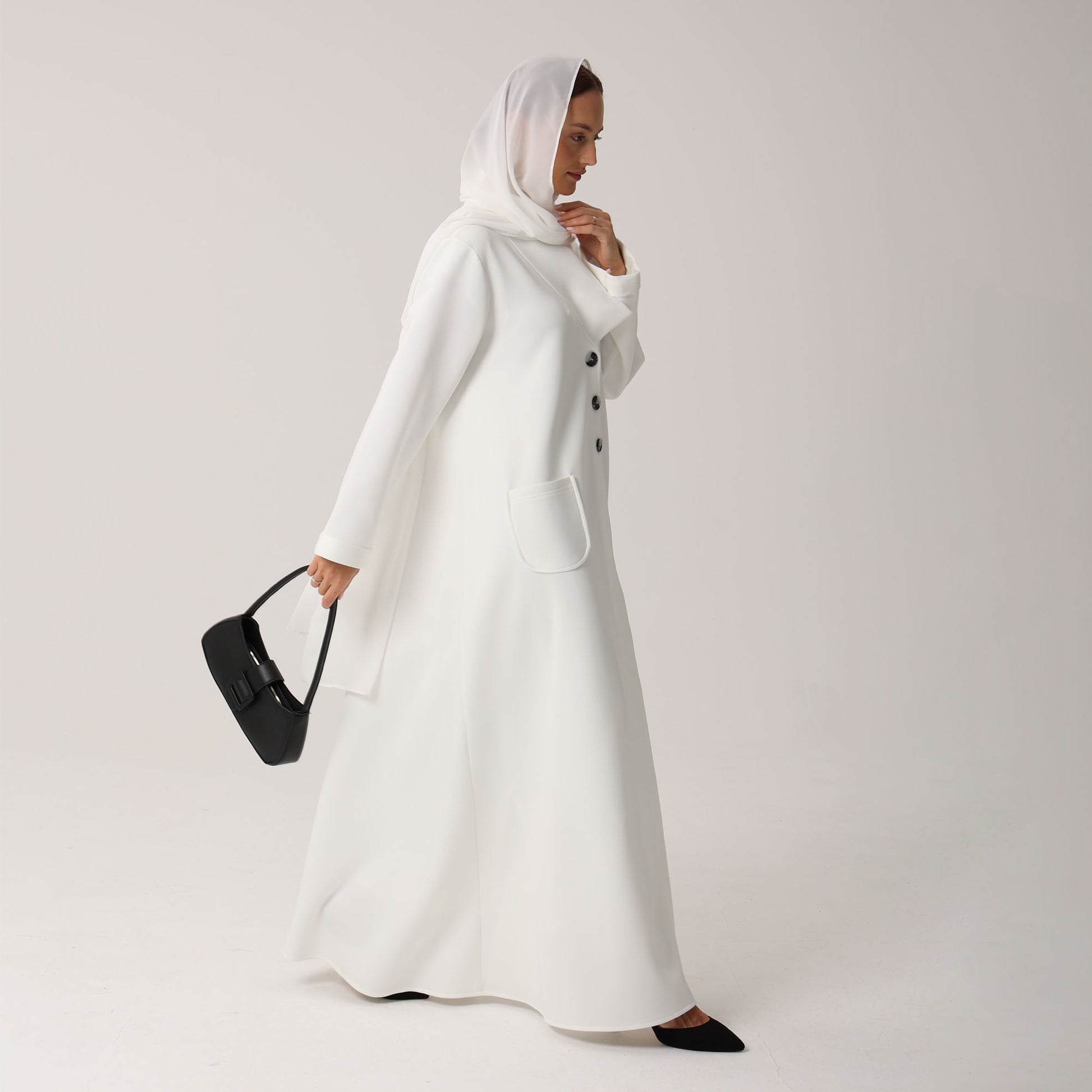 Elevate your modest fashion game with our latest creation. a stunning Abaya made from premium sandwich fabric, this Abaya promises an unparalleled level of comfort and style. The sandwich fabric, delivers a luxurious feel and exceptional durability.