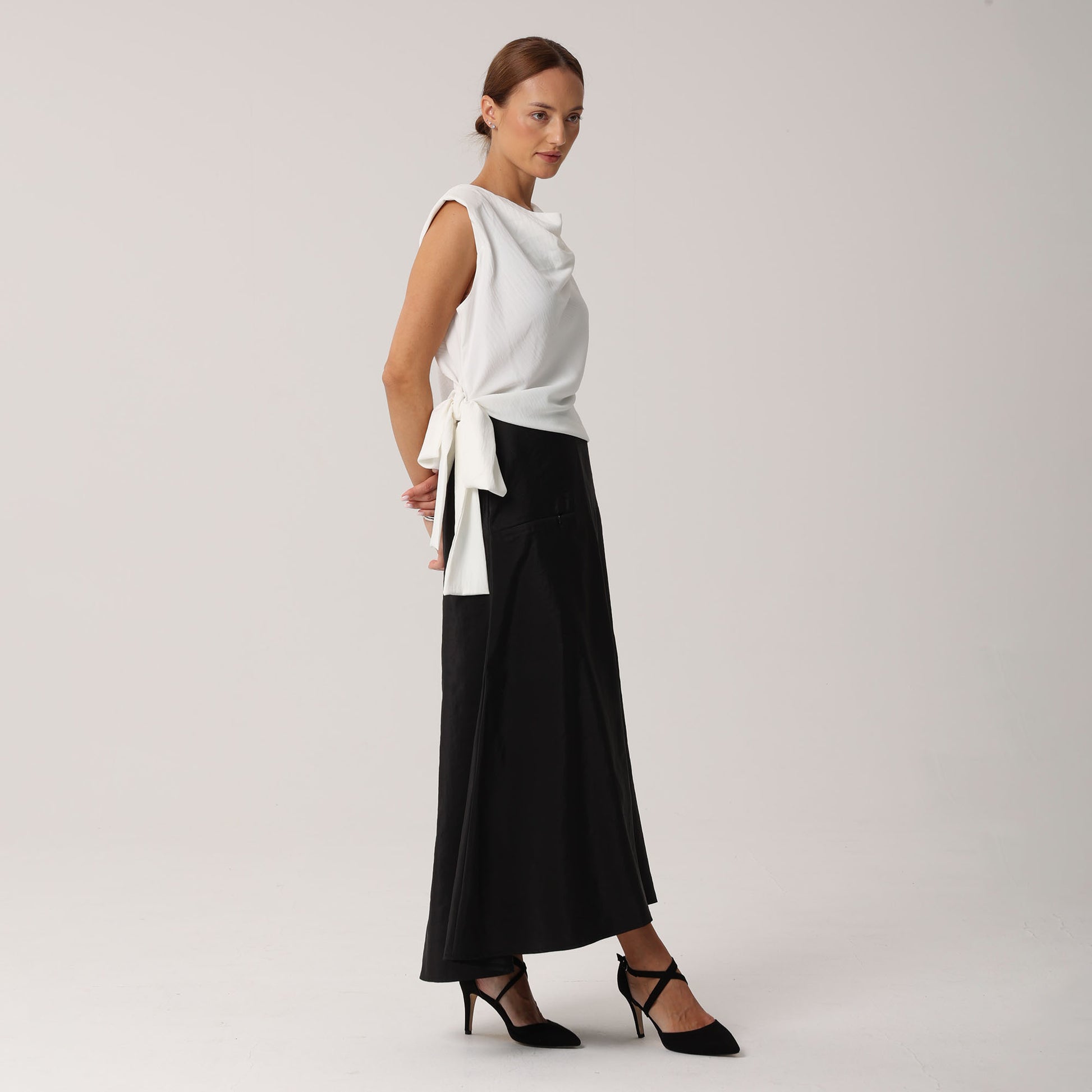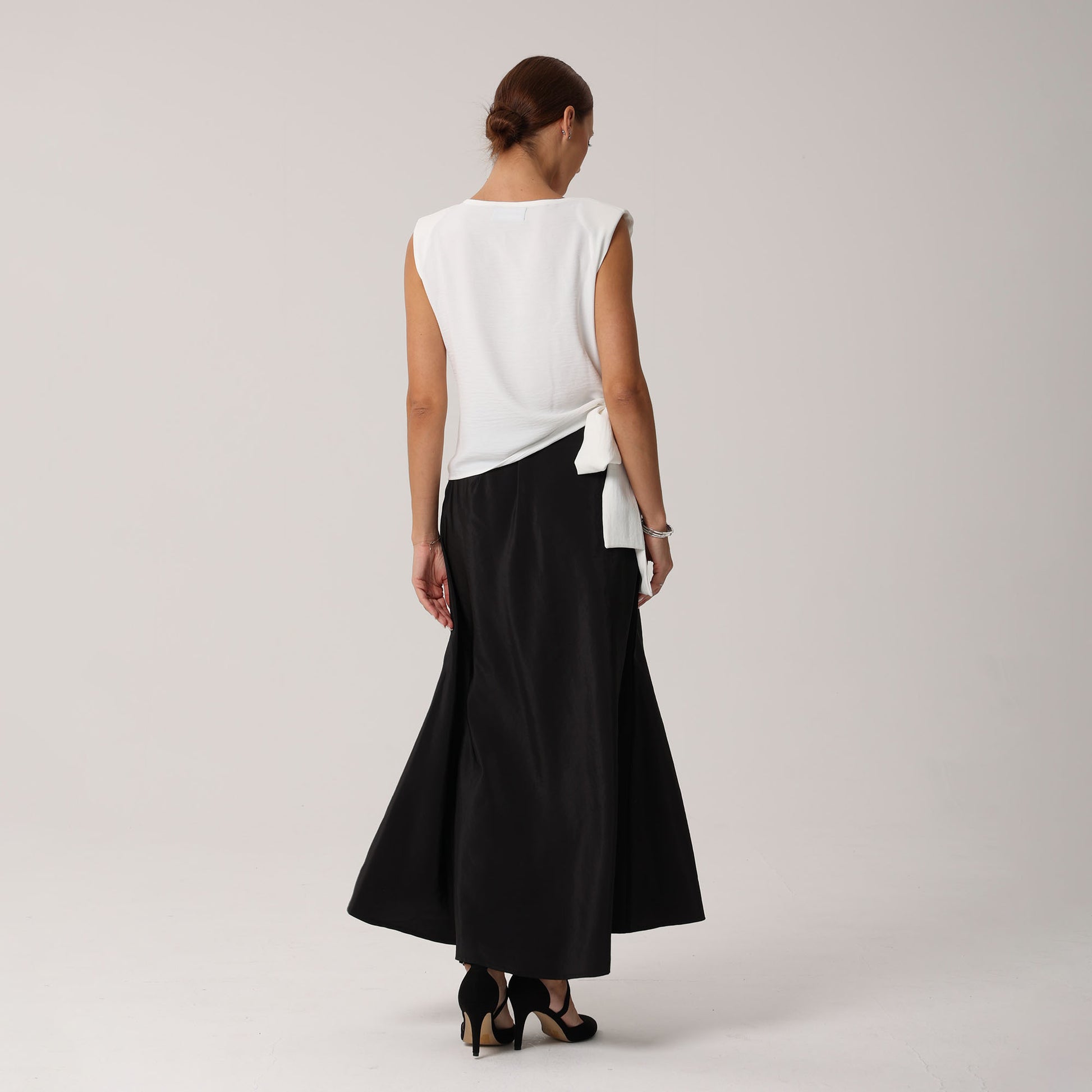 Elevate your wardrobe with our sophisticated black skirt, a timeless piece from our new modest collection. This skirt features a graceful A-line silhouette, crafted from high-quality fabric that drapes beautifully.