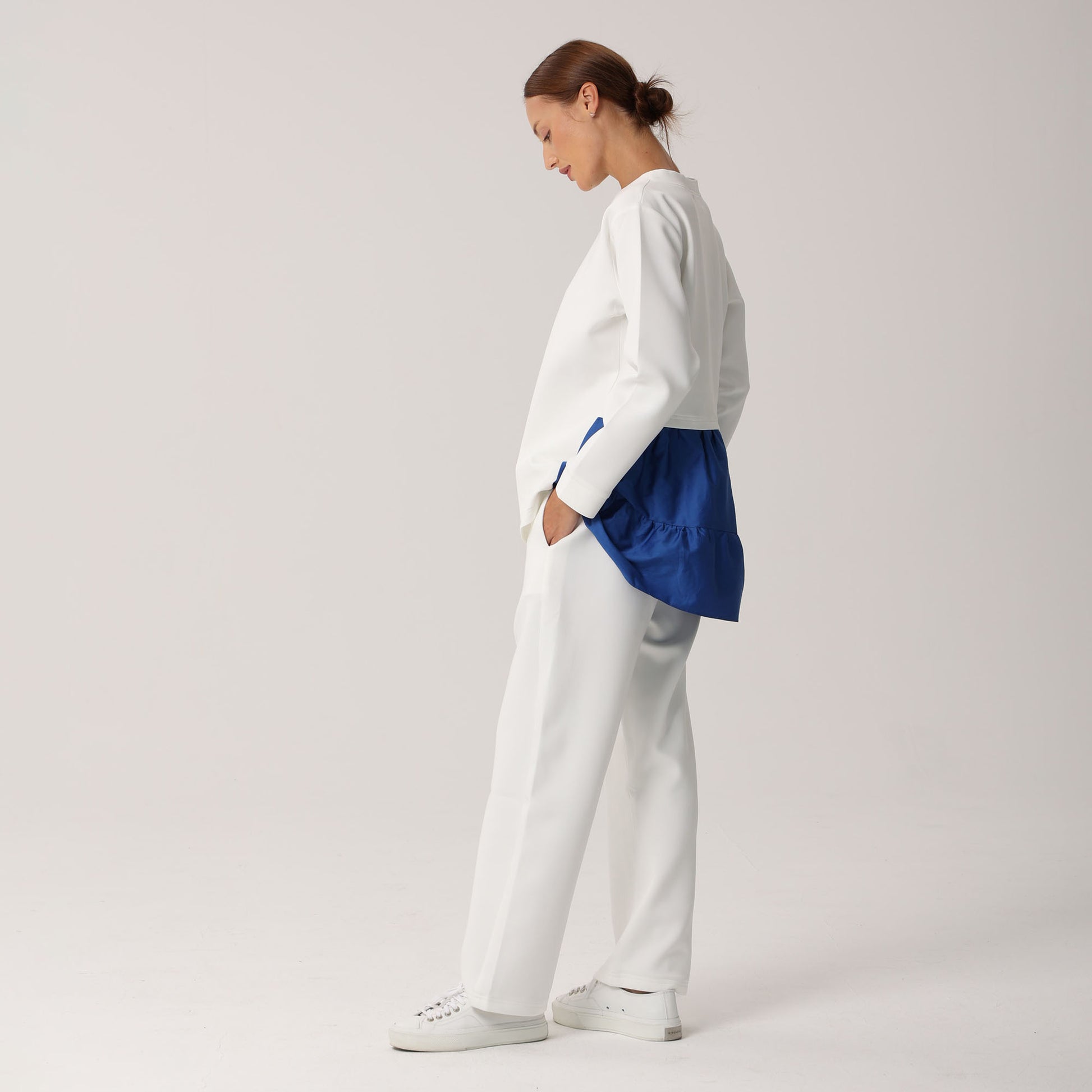 The set includes wide cut shirt with long sleeves and Straight leg trousers with pockets. From a brisk morning jog to a relaxed evening out, you'll find these pieces to be your go-to choice for daily wear.