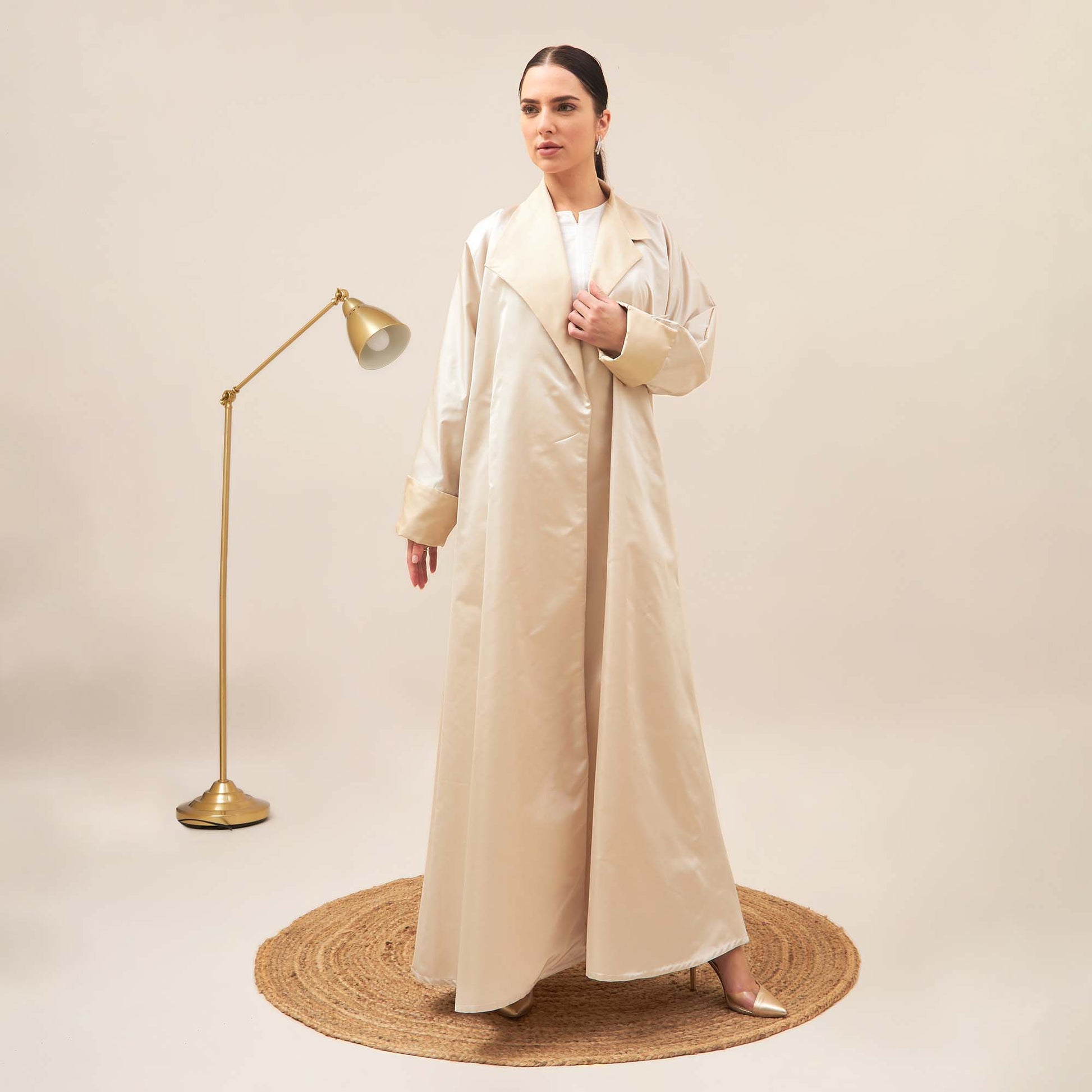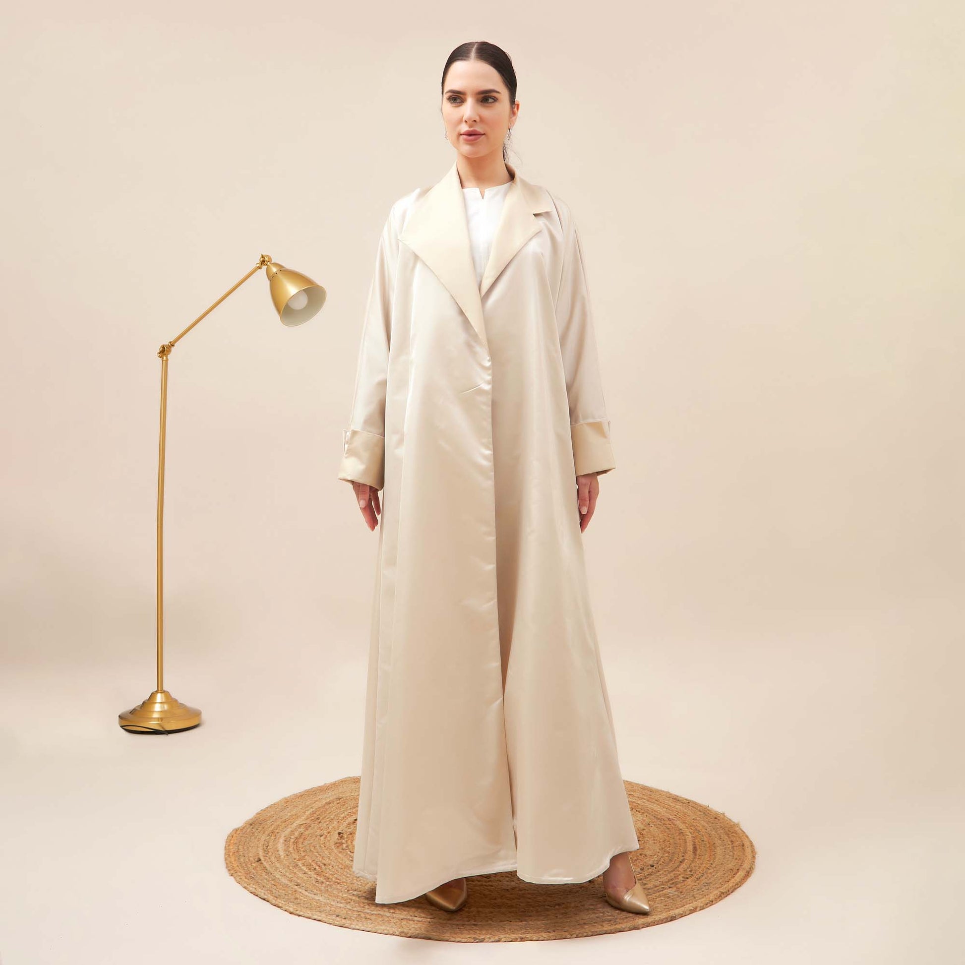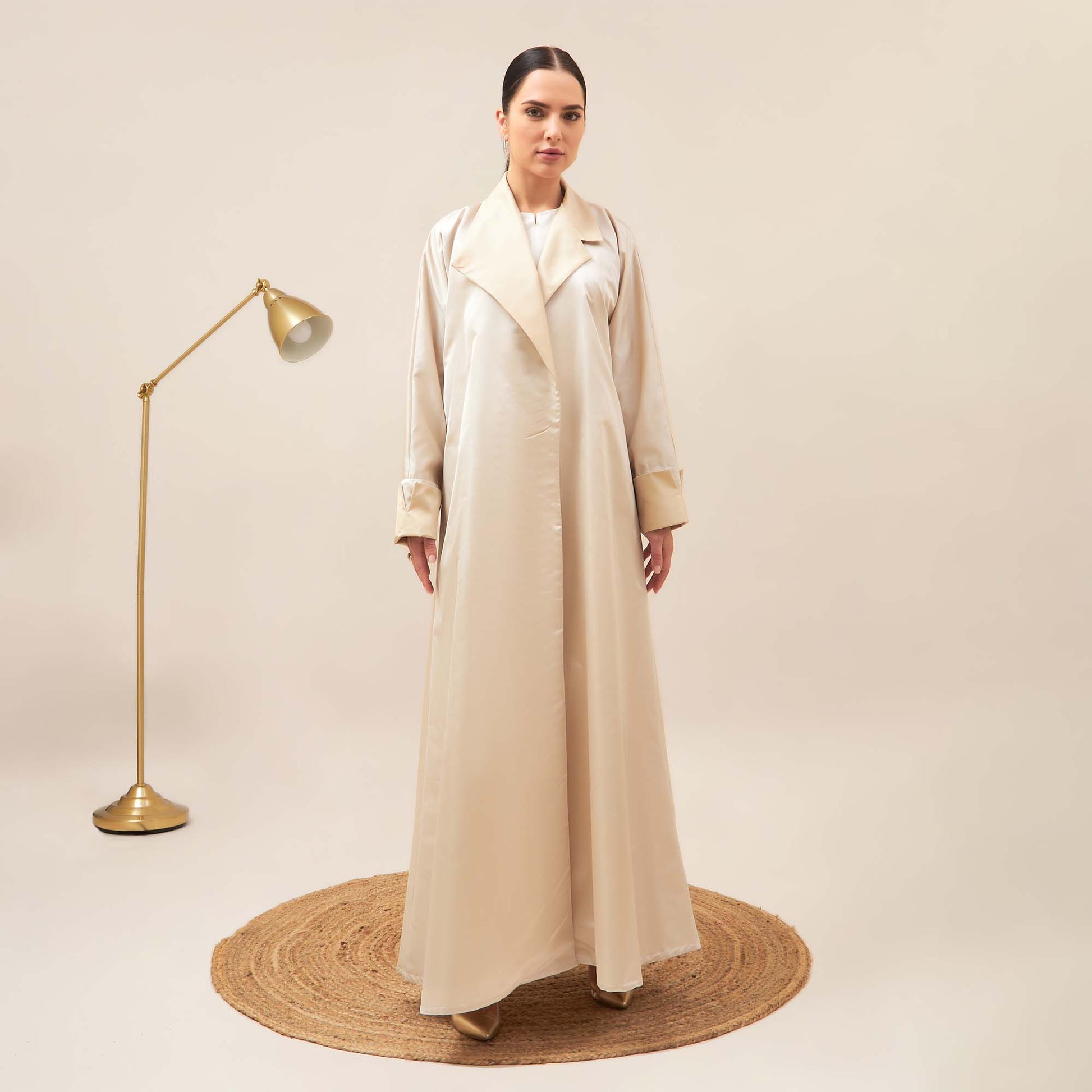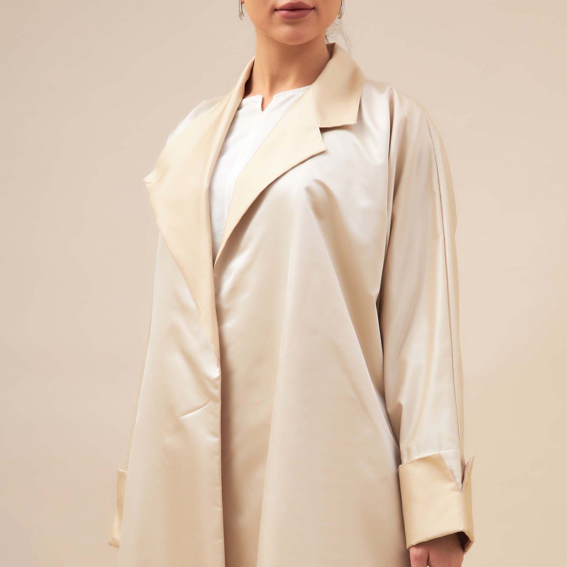 Discover the epitome of elegance with Layal coat-cut abaya crafted from luxurious satin fabric.