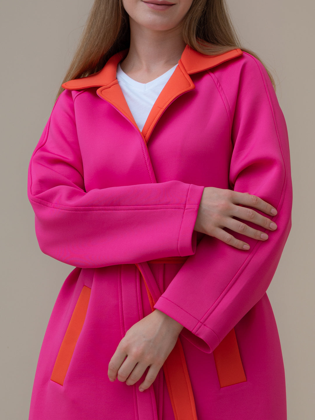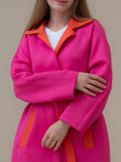جاكيت اورورا الطويل مناسب للبرودة المتوسطة ,مصنوع من قماش برادا الستريتشي الخاص بنا. يعطي اطلالة دافئة وانيقة مع حزام لمظهر اكثر انثوية