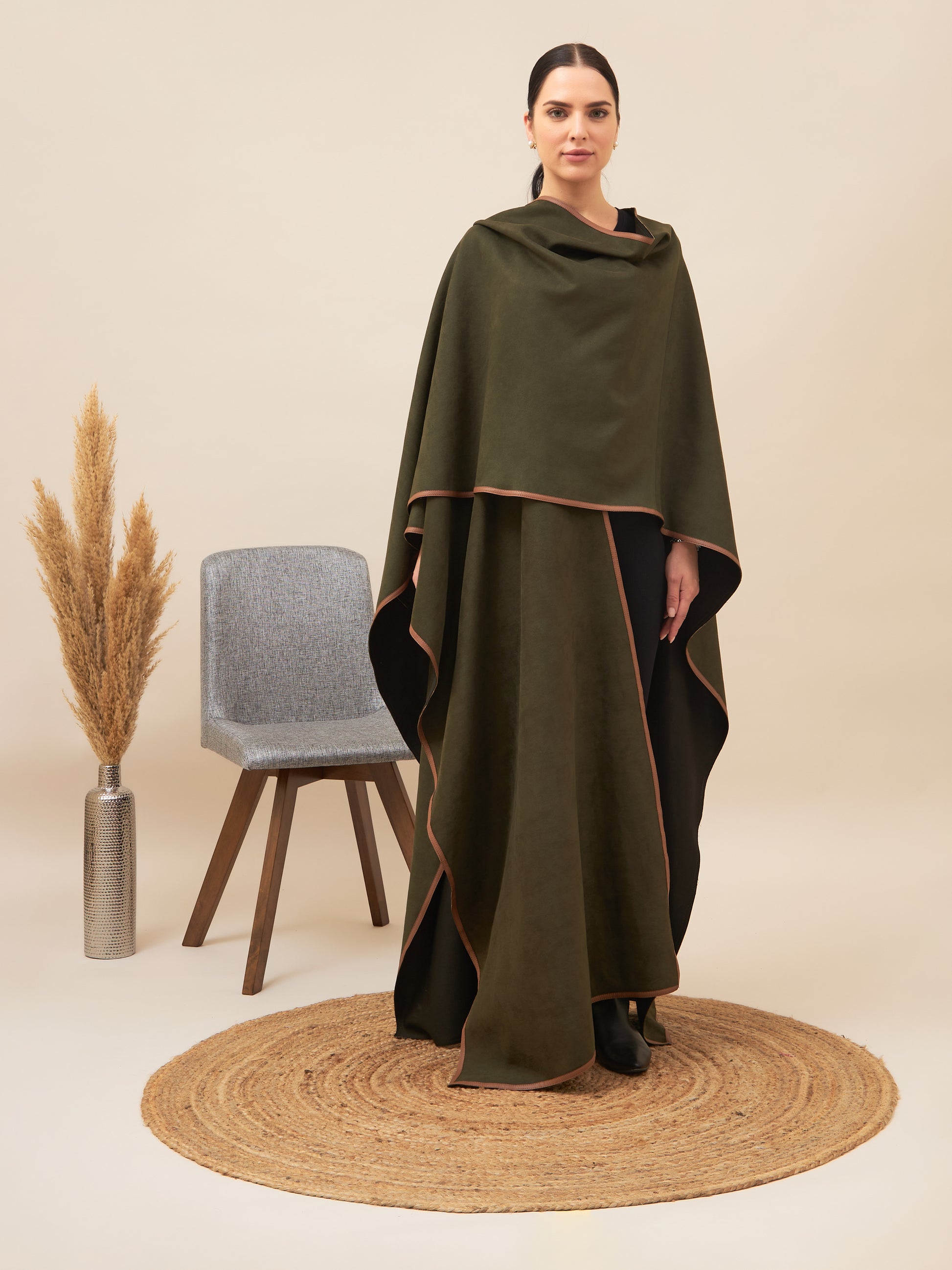 This elegant Chamois Cape is made from soft chamois fabric with leather border, it gives you sense of luxury, warmness and elegancy.