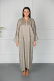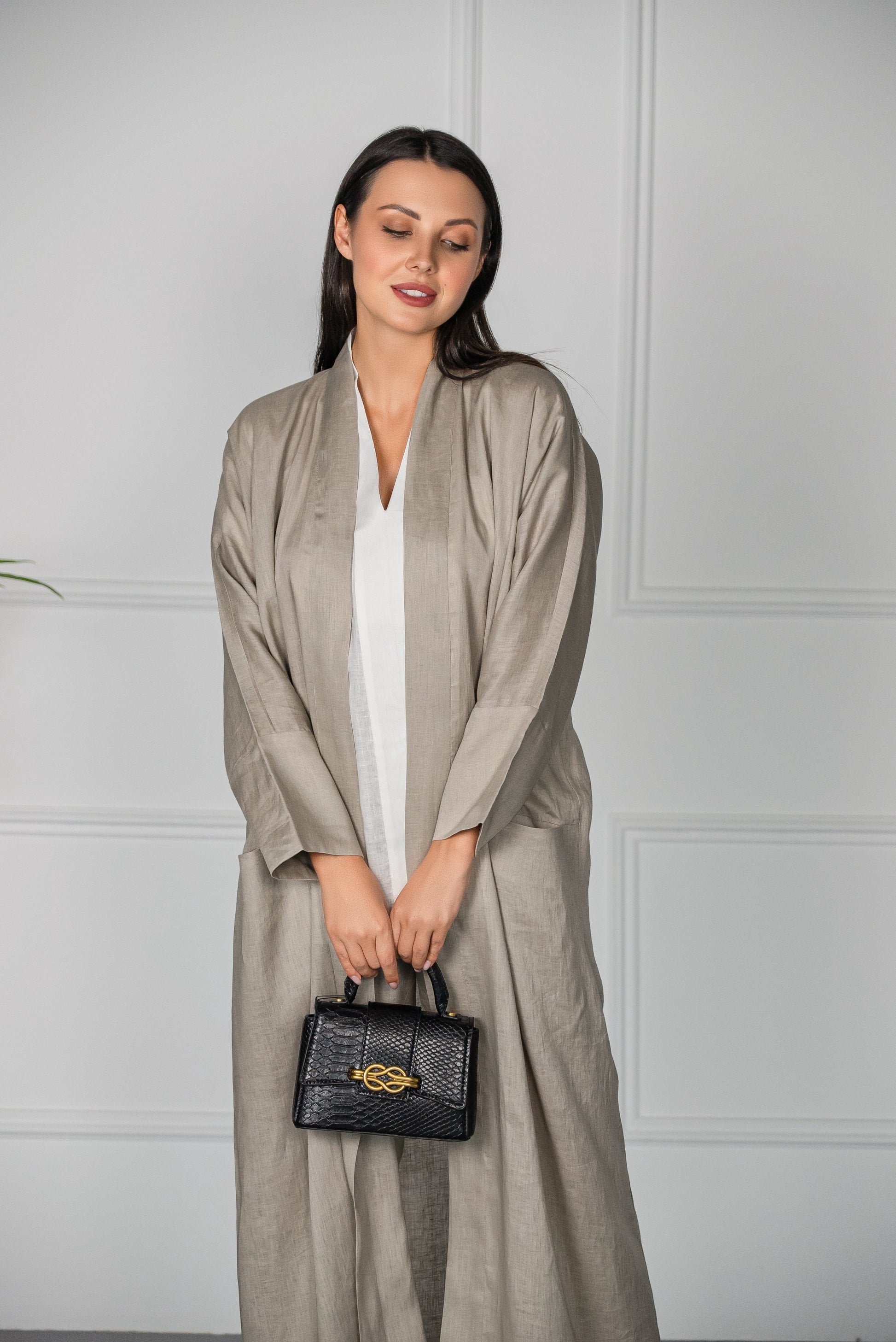 When understated elegance is your goal, turn to this three-piece set from Comigant. A perfect everyday outfit, the outfit includes an abaya, short-sleeved top and straight cut pants that are crafted from linen for a cool and lightweight feel. Ideal choice for travel. t- shirt