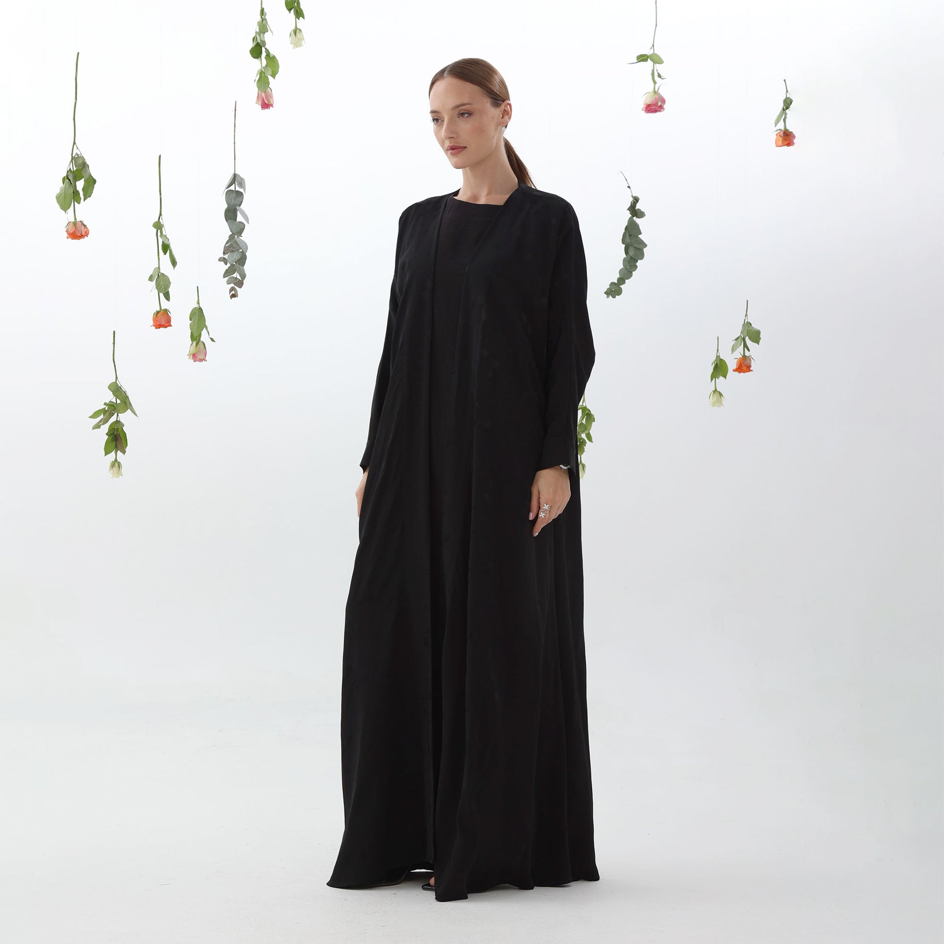 Embrace timeless elegance with our Blossom Abaya in beige. This exquisite piece features a flowing beige-hued overlay, crafted from high-quality fabric that ensures both comfort and style. The subtle floral patterns with delicate small flowers and graceful silhouette evoke a sense of romance and sophistication, perfect for any elegant occasion. the Blossom Abaya ensures you make a statement with effortless grace. Whether you're attending a garden party or an evening soirée, let the soft, flowing fabric and refined design transport you to a world of serene beauty.