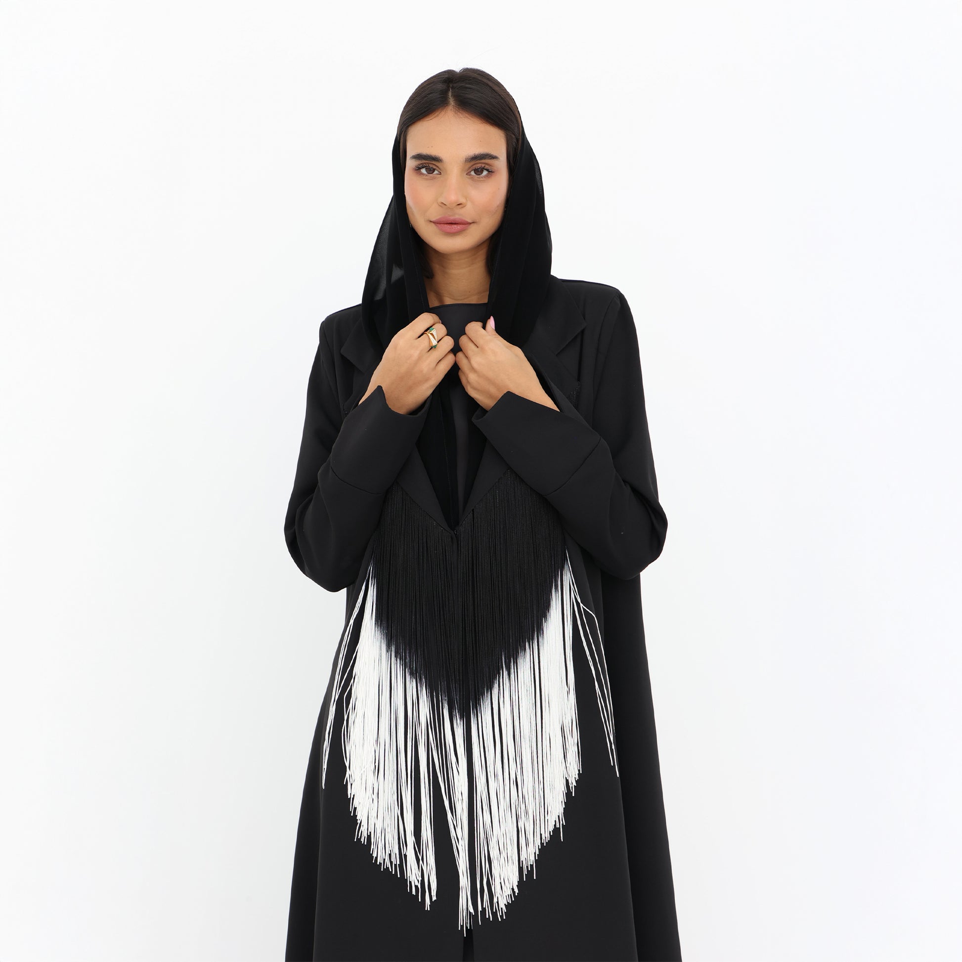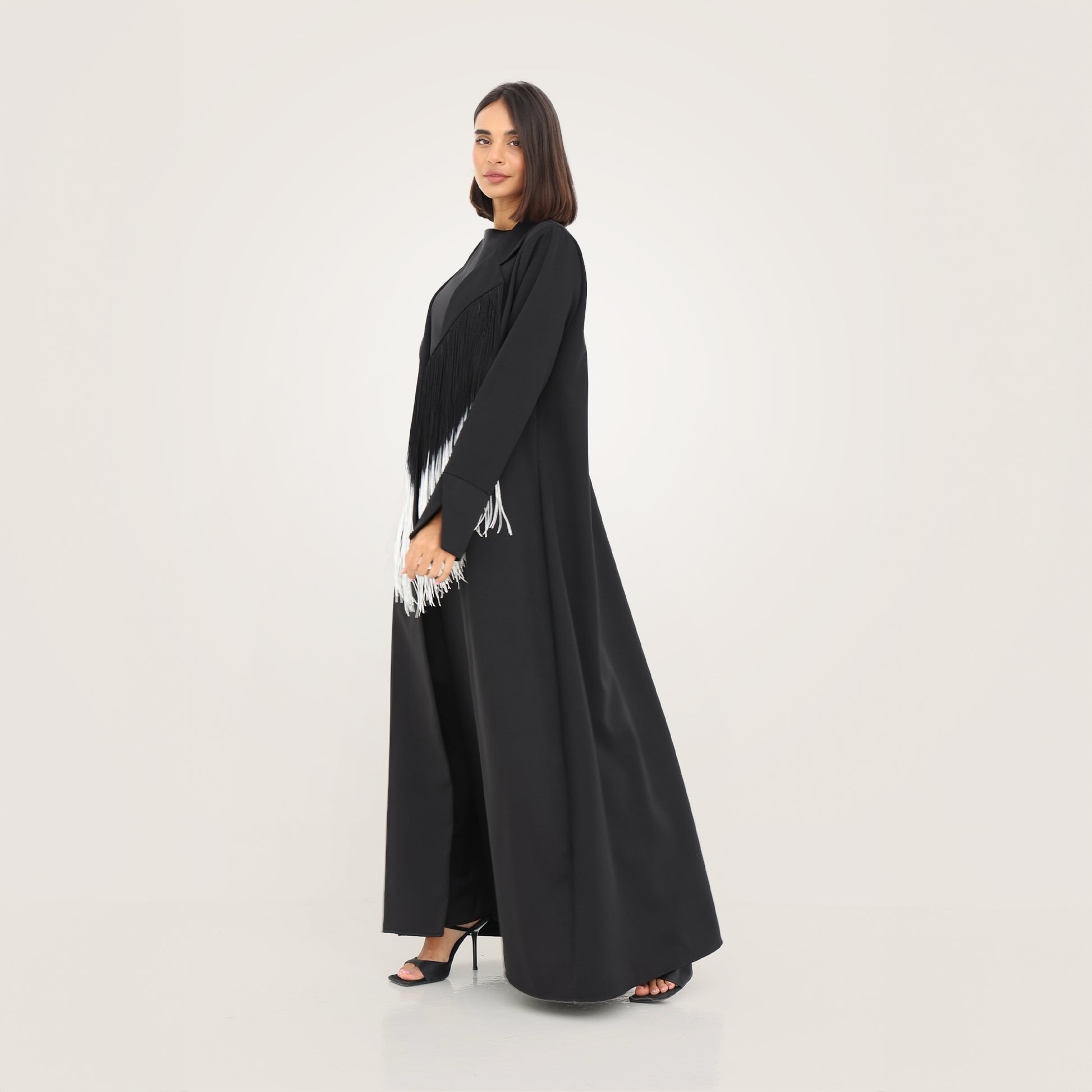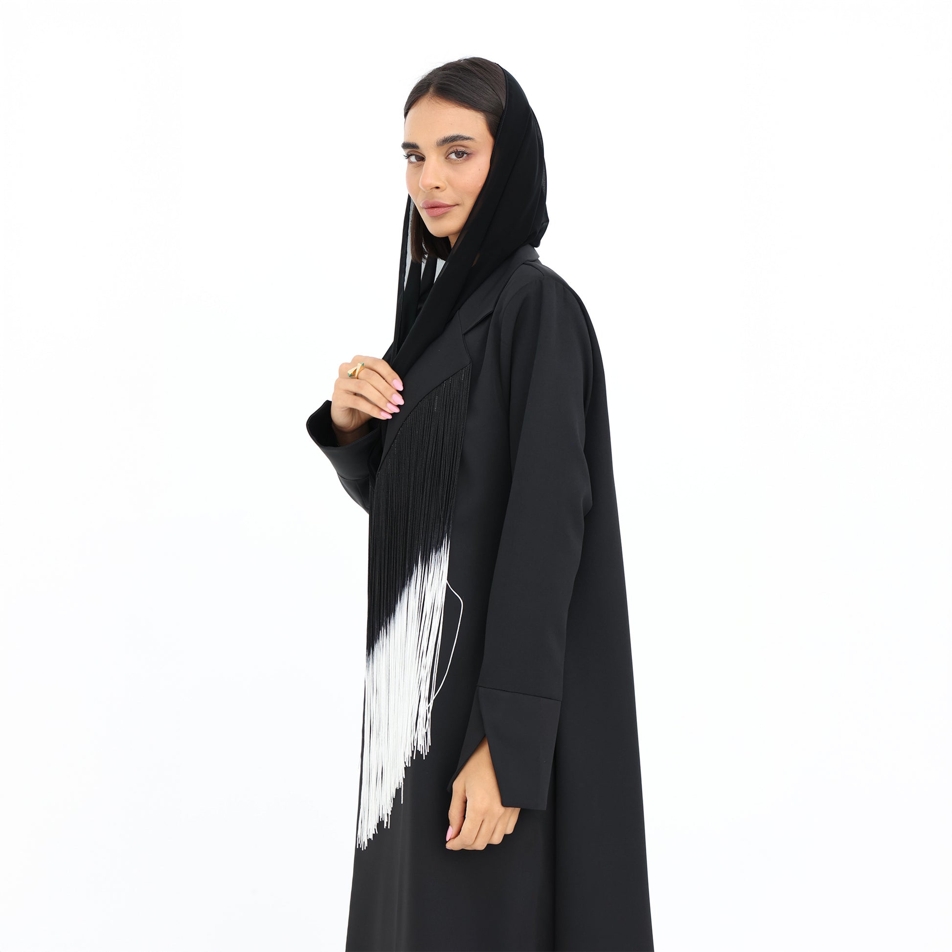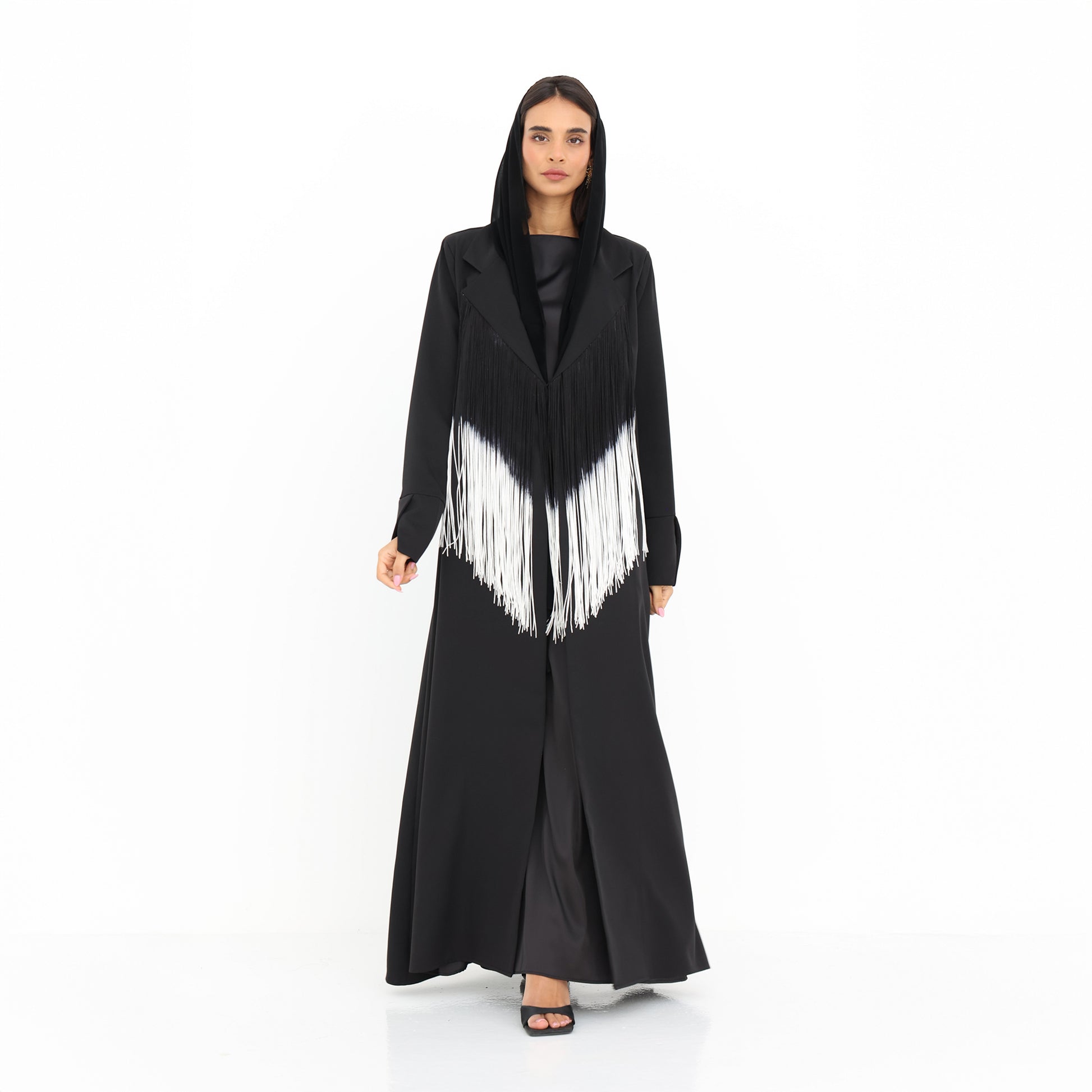Monochrome Fringe Abaya