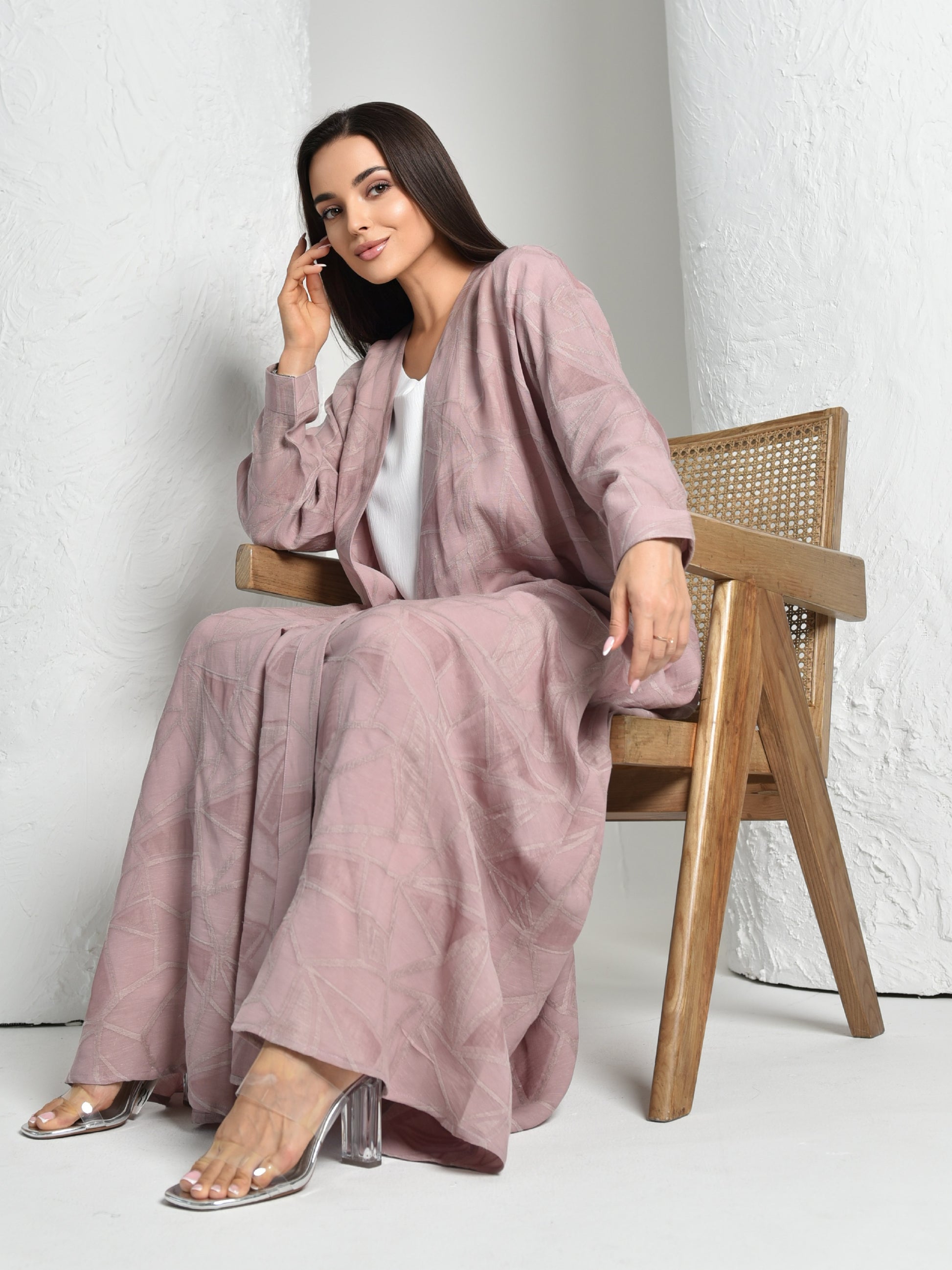 This abaya brings a sense of luxury and a contemporary aesthetic. This fluid Design is created from pure Jacquard Italian linen, ensuring your comfort and elegancy.