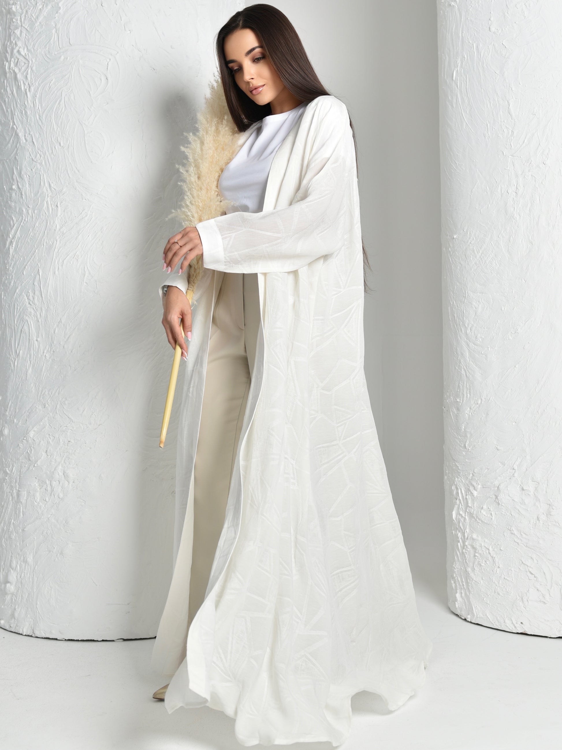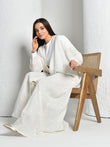 This abaya brings a sense of luxury and a contemporary aesthetic. This fluid Design is created from pure Jacquard Italian linen, ensuring your comfort and elegancy.