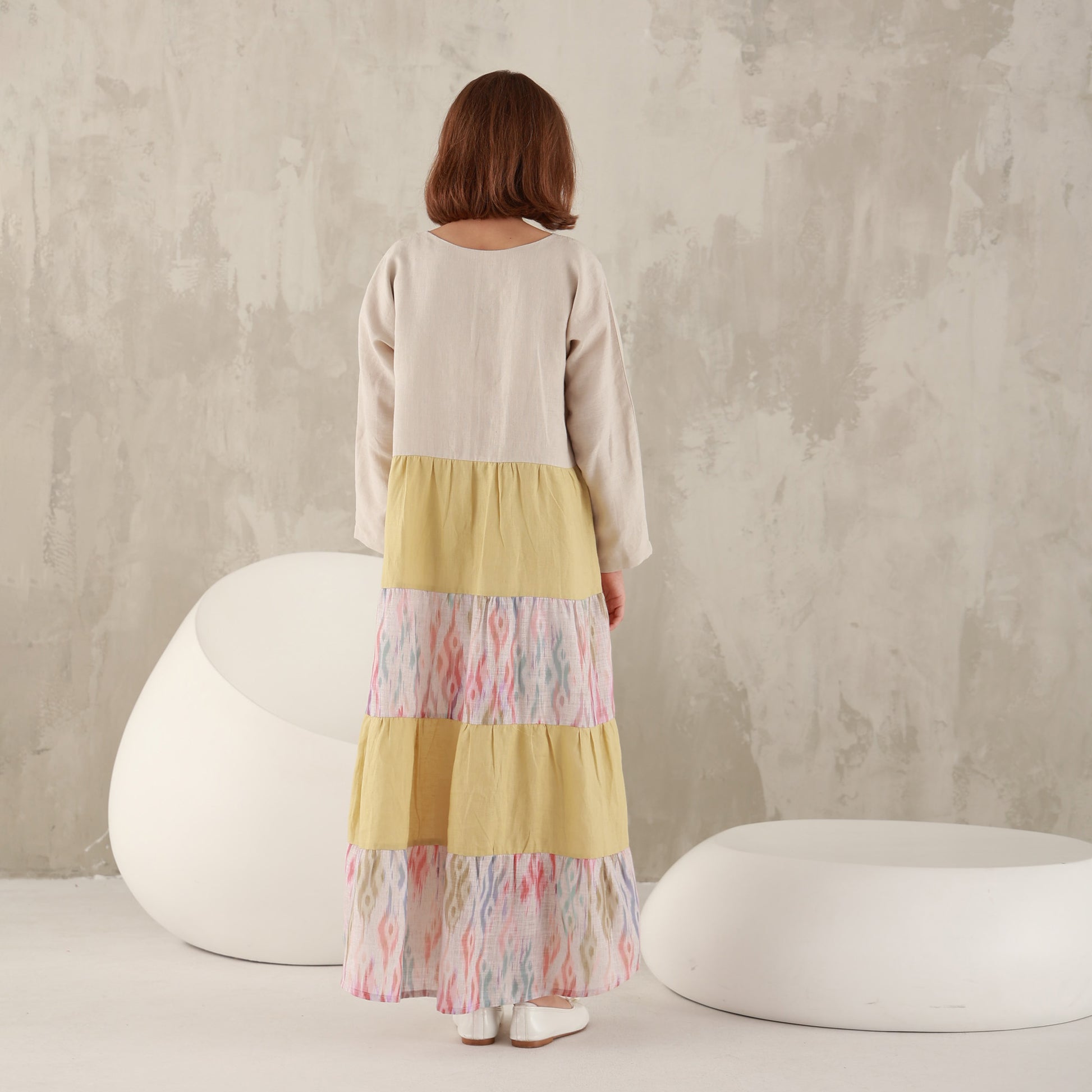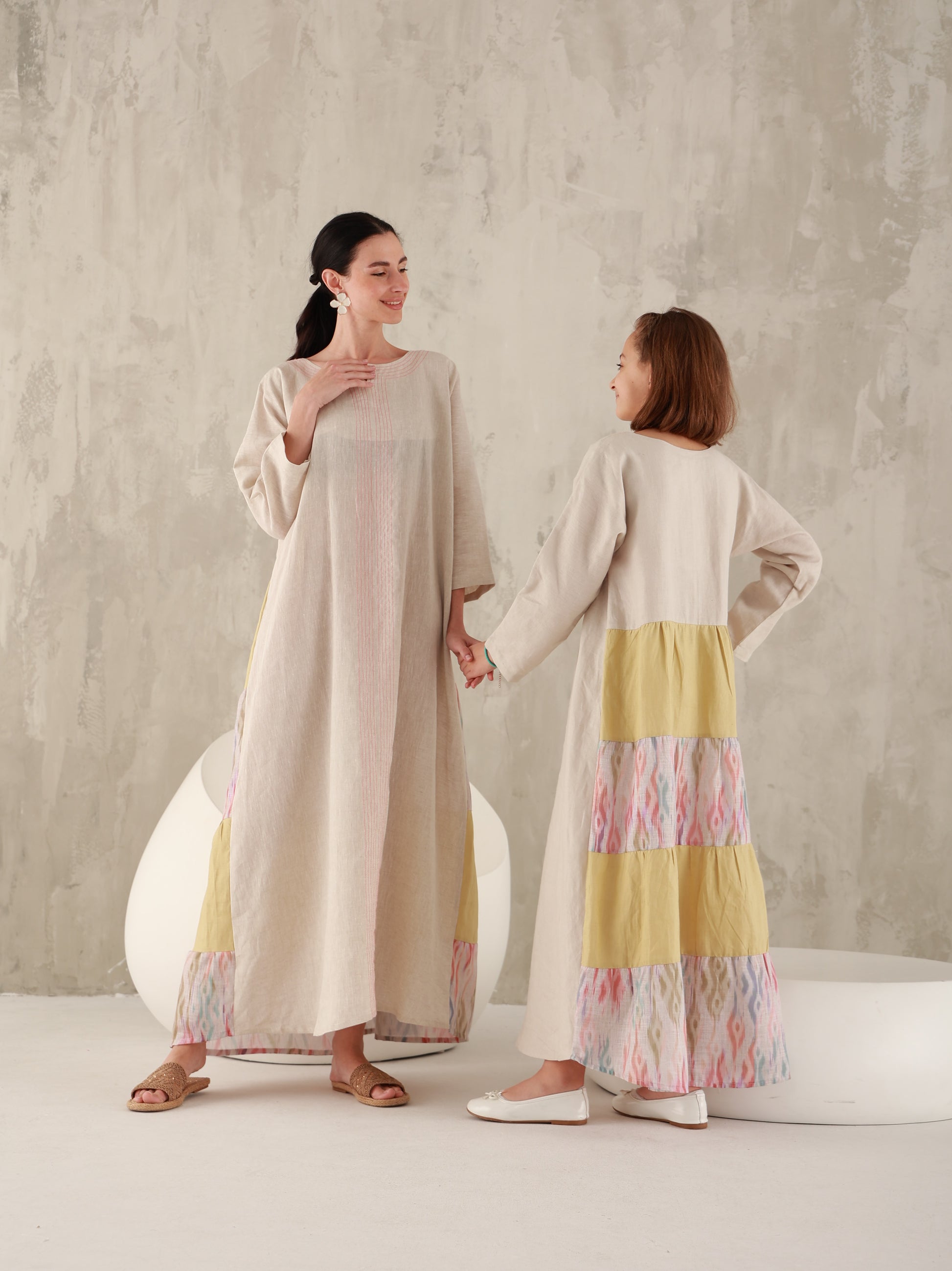Ayla linen dress features a special design on the back that really sets it apart from other dresses. The mix of colors is also a nice touch, adding some beautiful visual interest to the dress.
