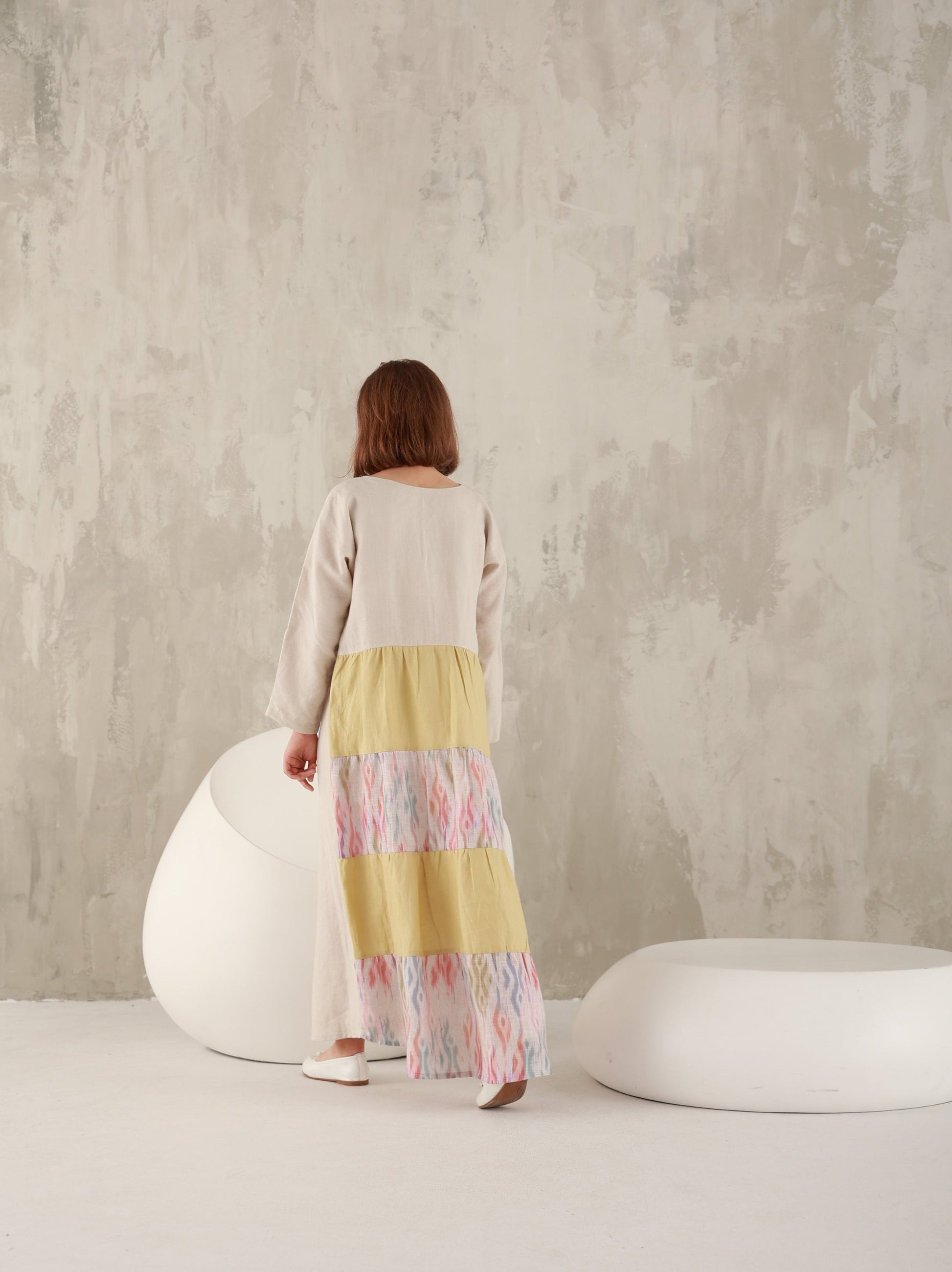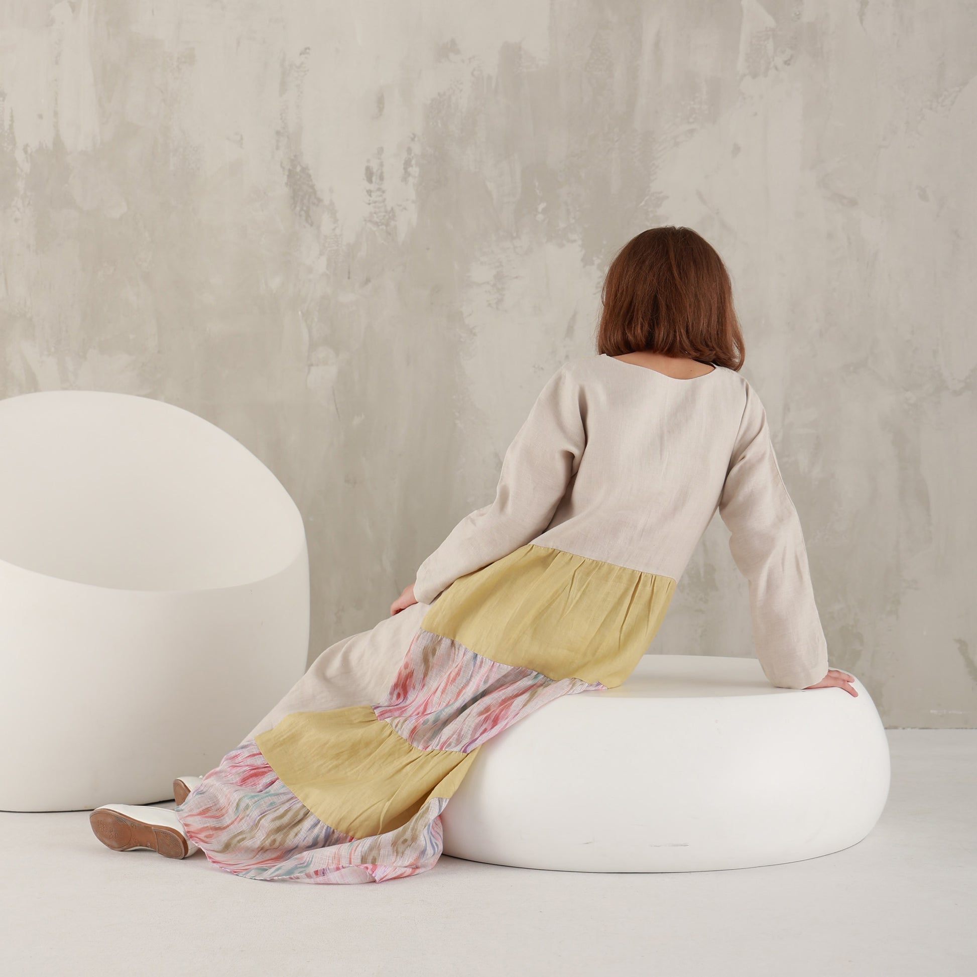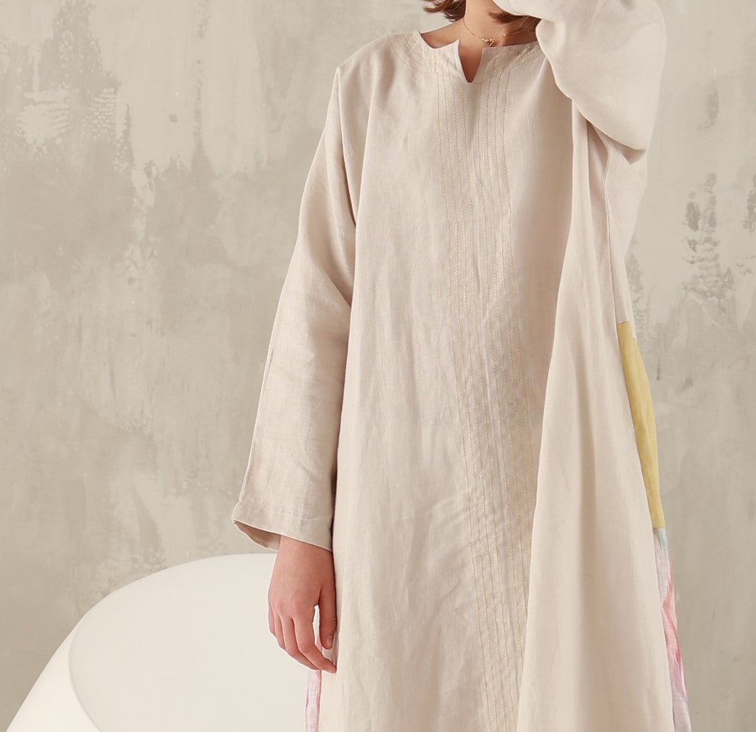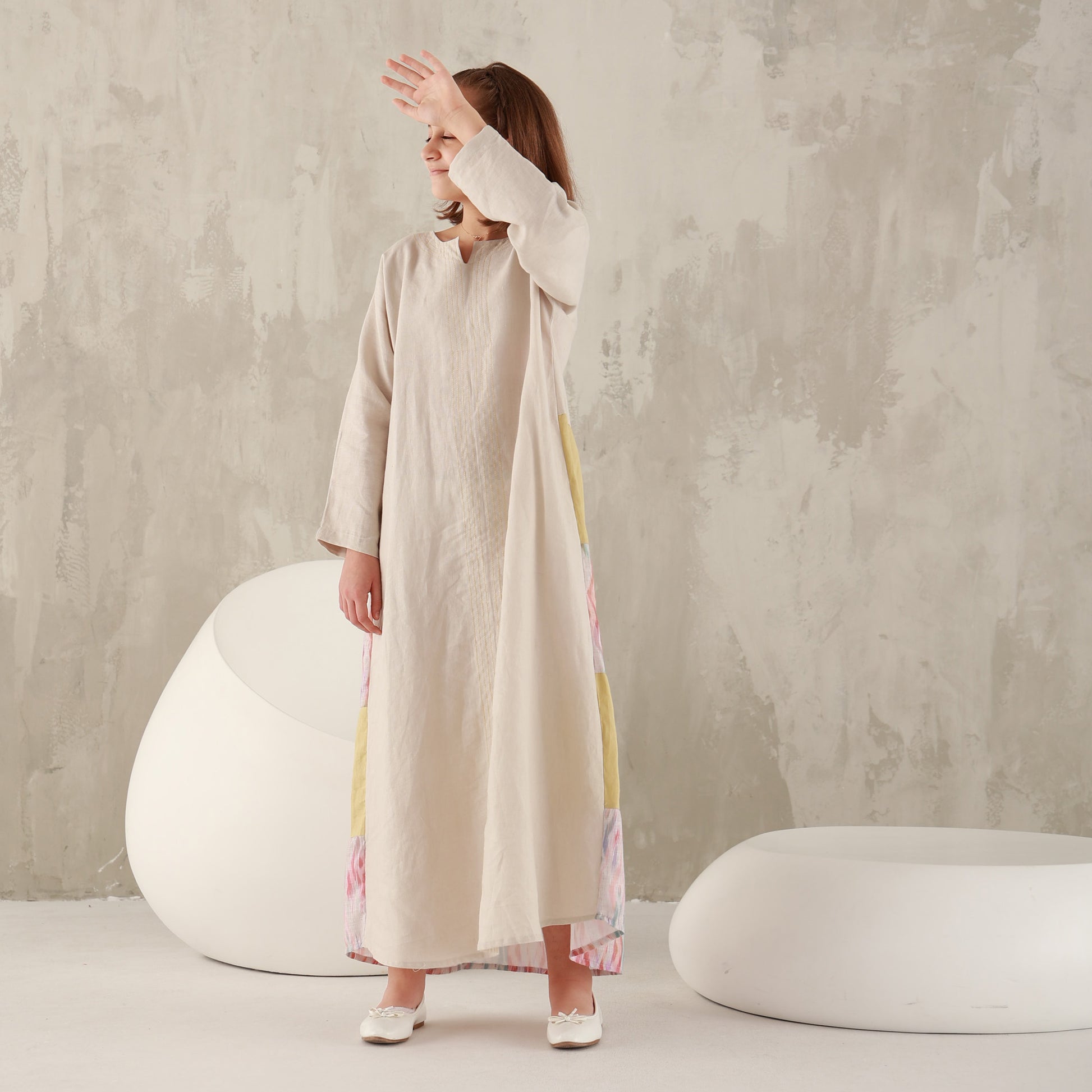Overall, this dress is perfect for those who want to look chic and stylish while still feeling comfortable and relaxed. The linen fabric is soft and breathable, which means you can wear it all day without feeling too hot or stuffy. Plus, the unique design and mix of colors make it a great choice for any occasion.