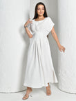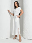 The Lugano dress is one of those versatile pieces that is a true investment in a curated wardrobe. Cut from mixed cotton, the dress has been tailored to celebrate femininity. note the breezy sleeves, and belt on the waist.