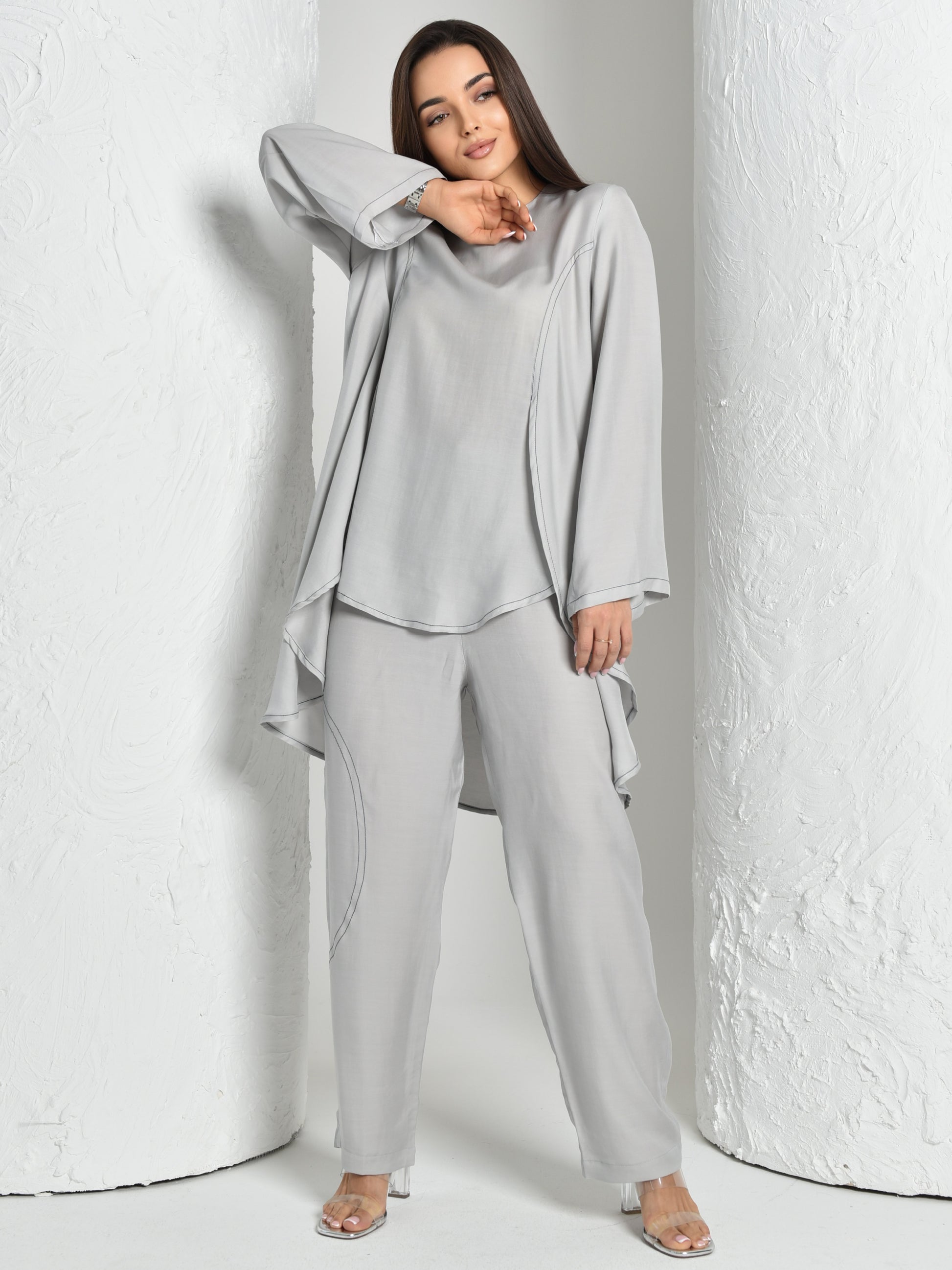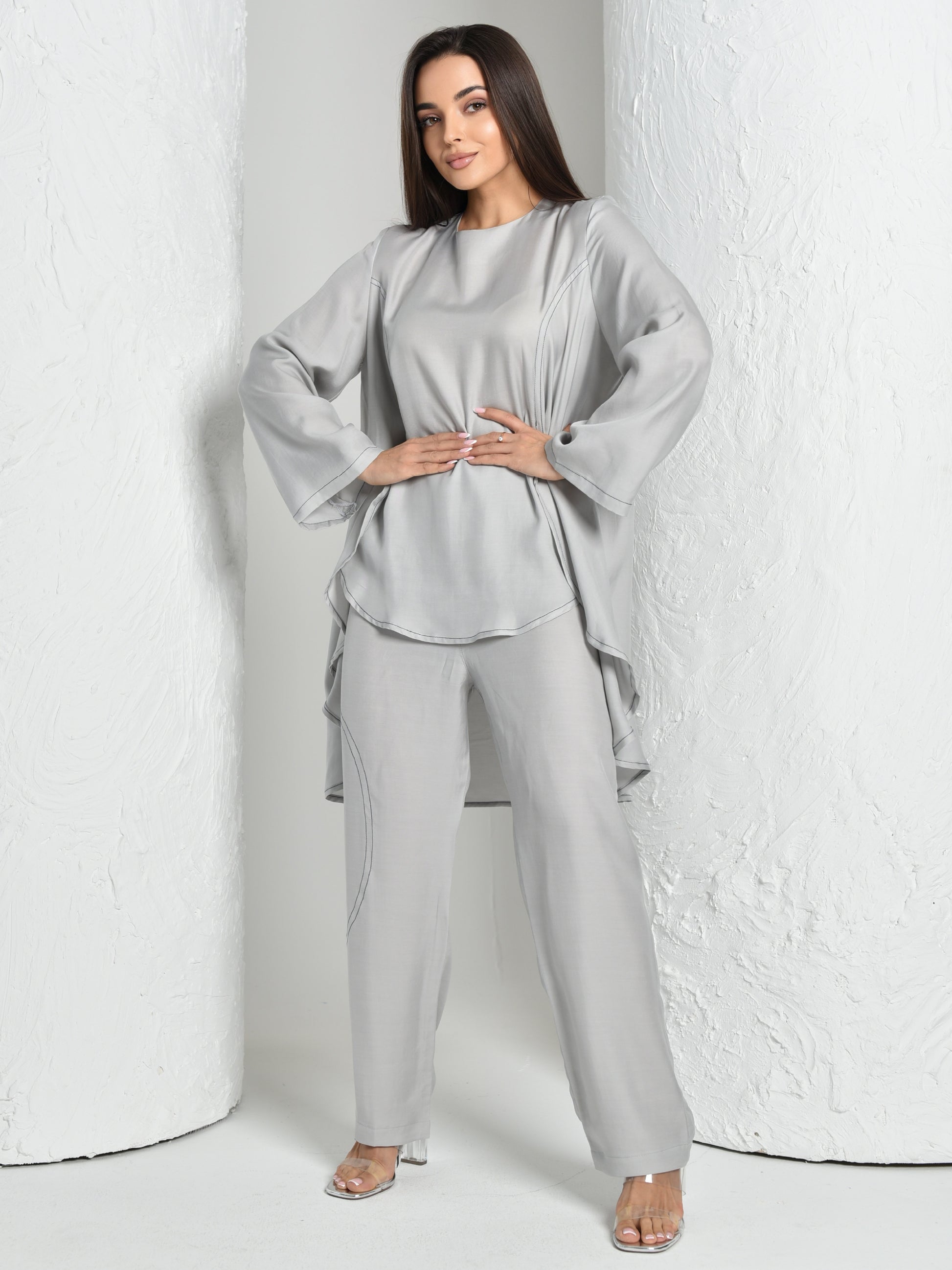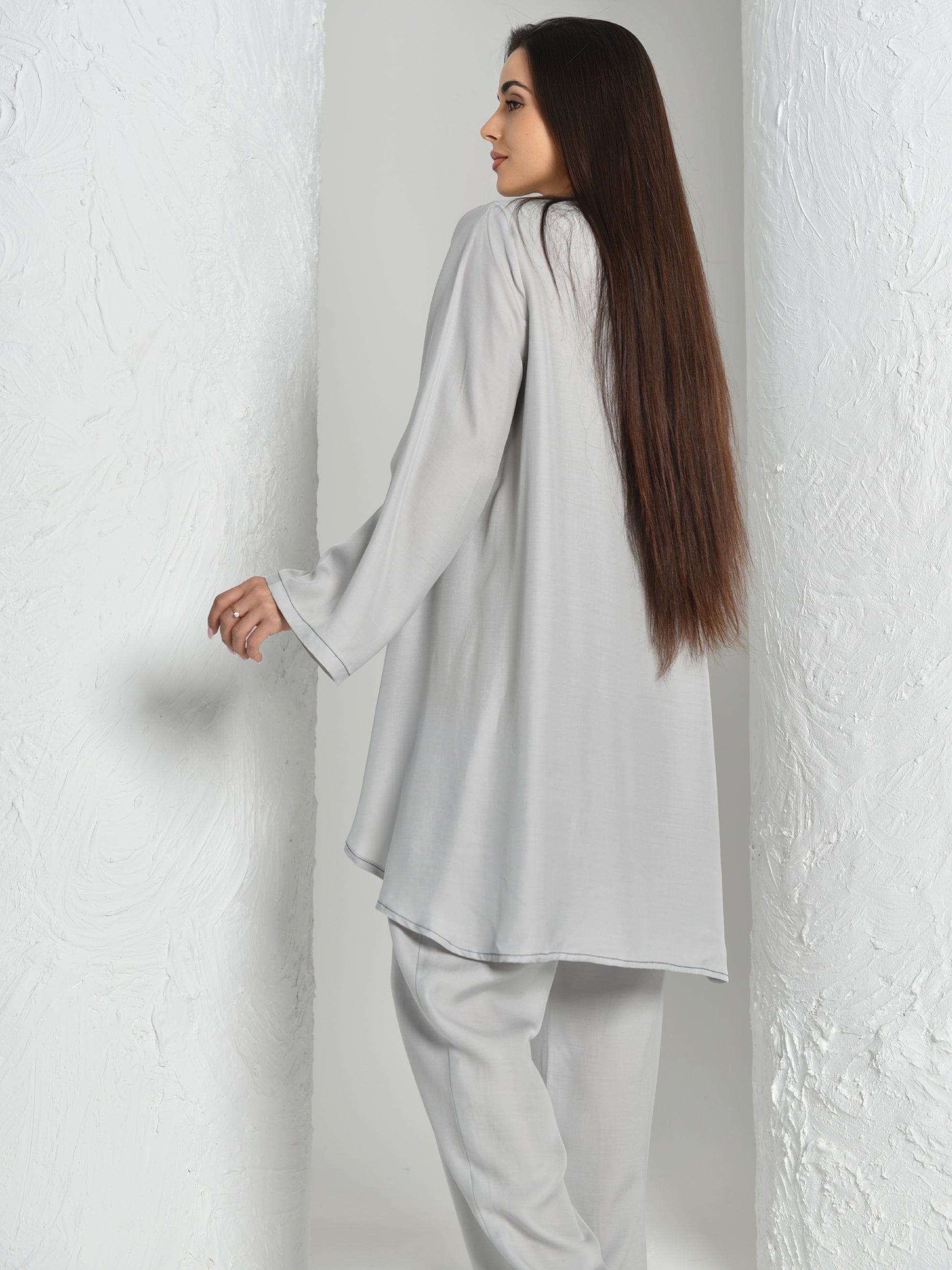 With its contemporary yet modest design, this causal shirt and pant set will be a stand-out addition to your wardrobe. Crafted in Japanese Tencel linen fabric, the shirt is tailored with special cut and back longer than front that match the straight cut pants perfectly. ideal choice for travel.