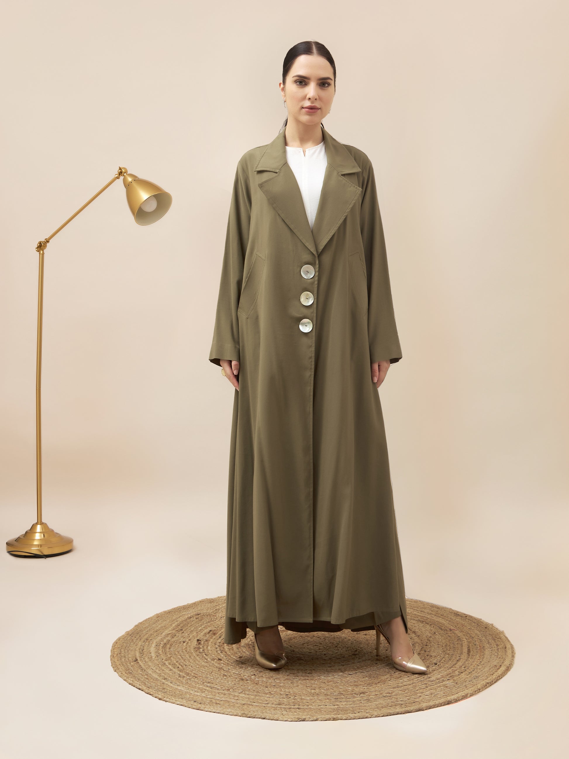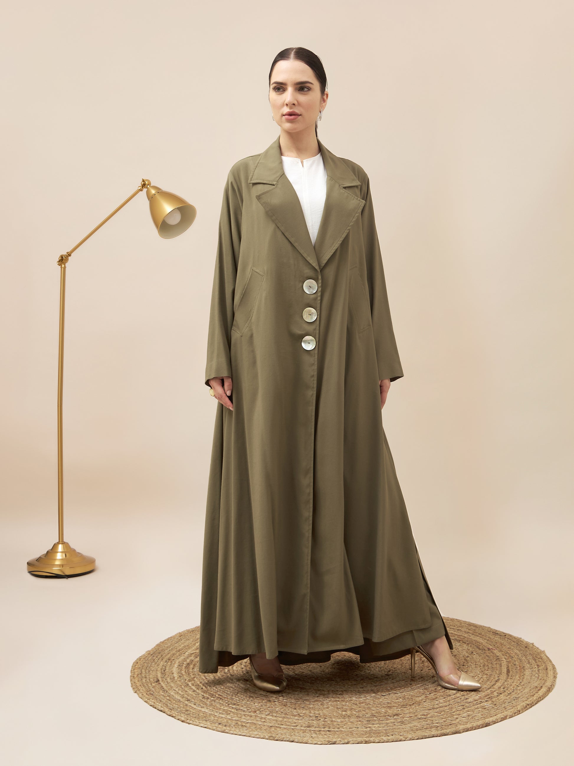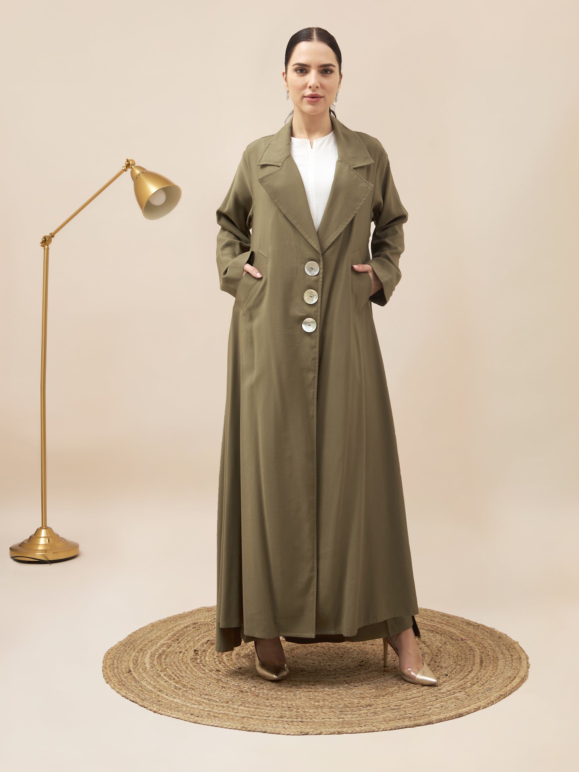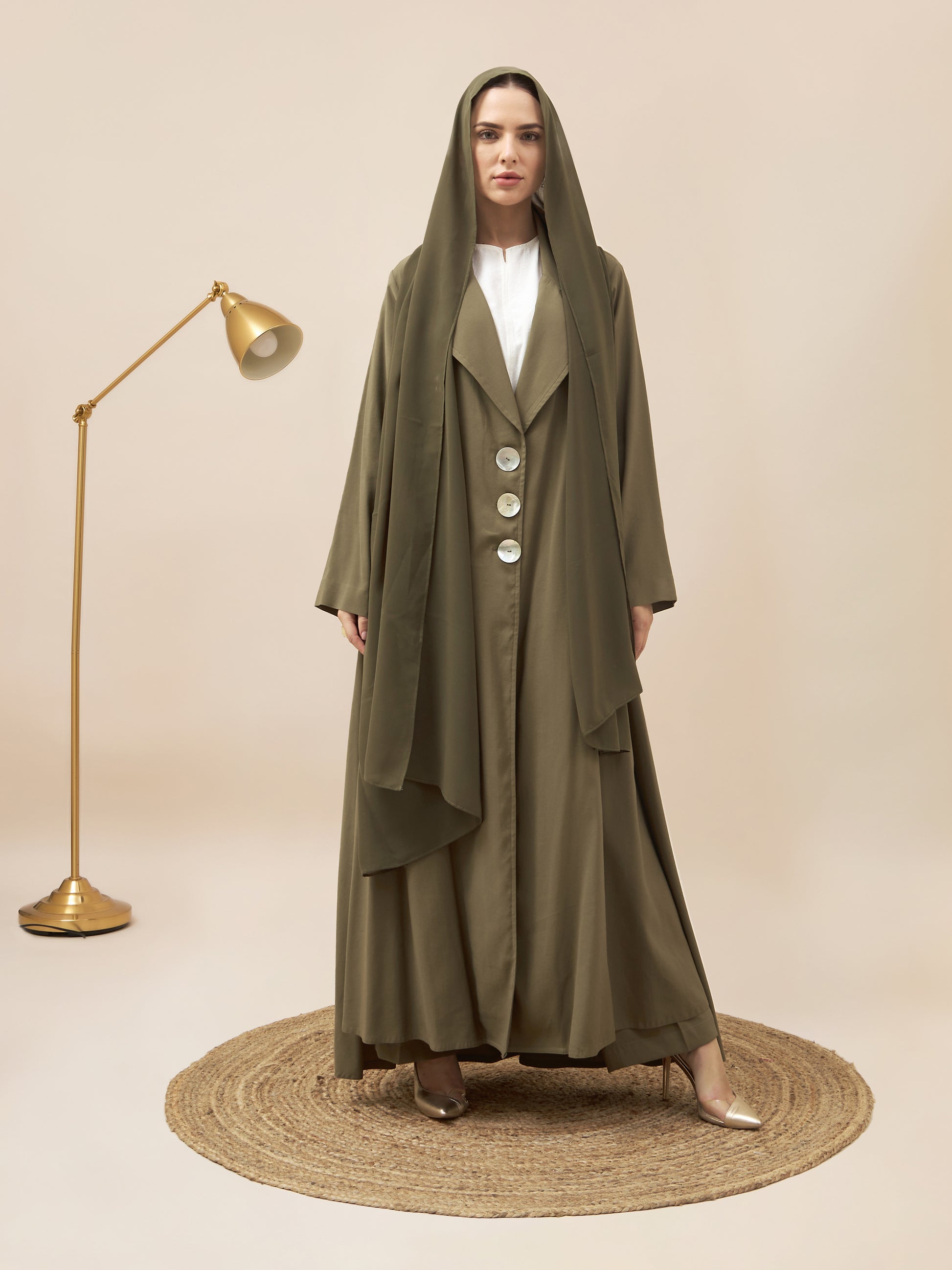 Achieve elegance without compromising on comfort with Mthayel abaya from the new Business collection. Chic and versatile, it is tailored with a coat silhouette that is loose and flowing and given a touch of modern flair with a two-tone design.