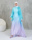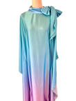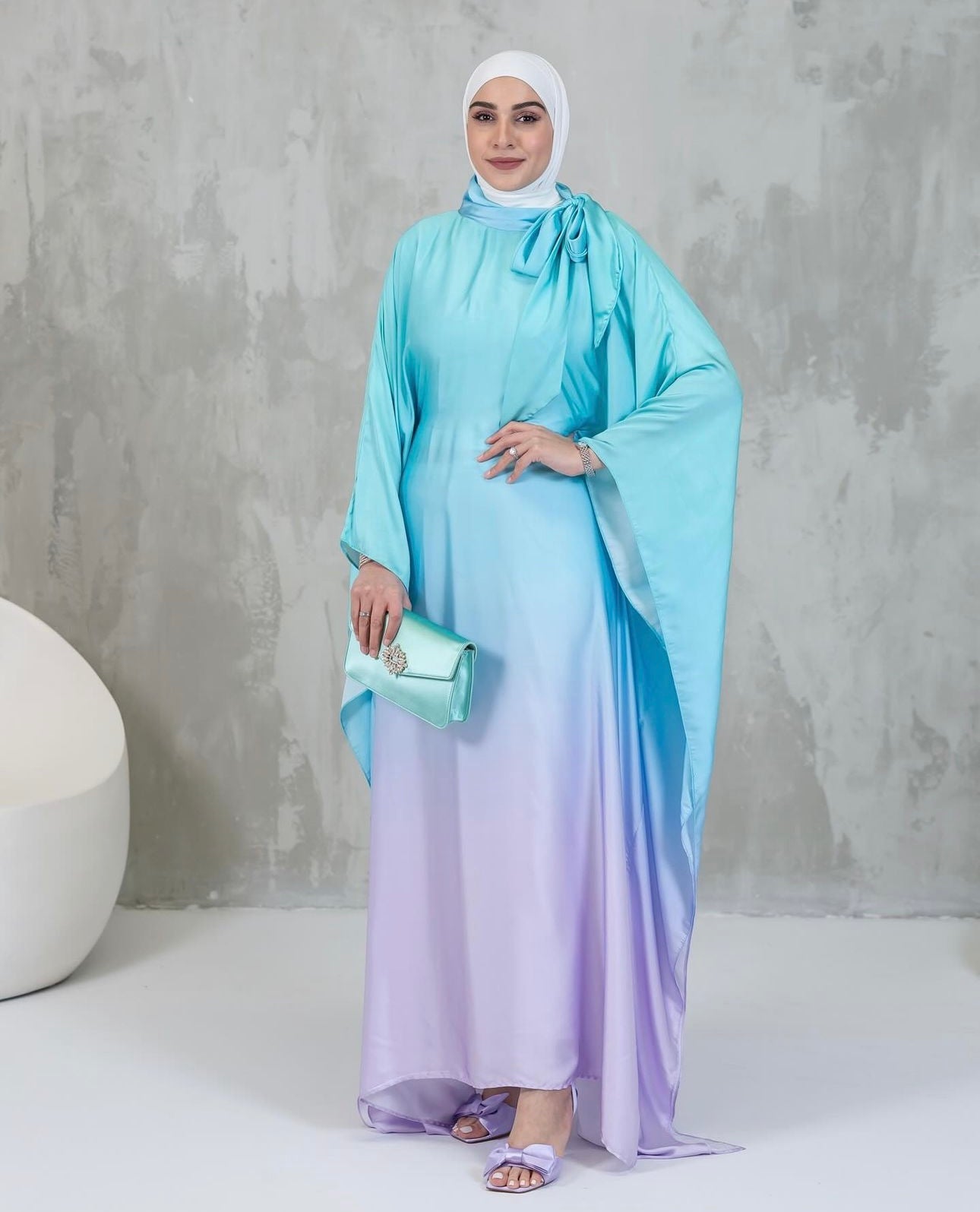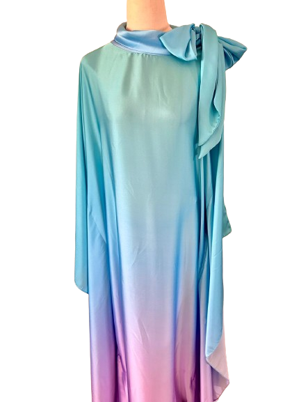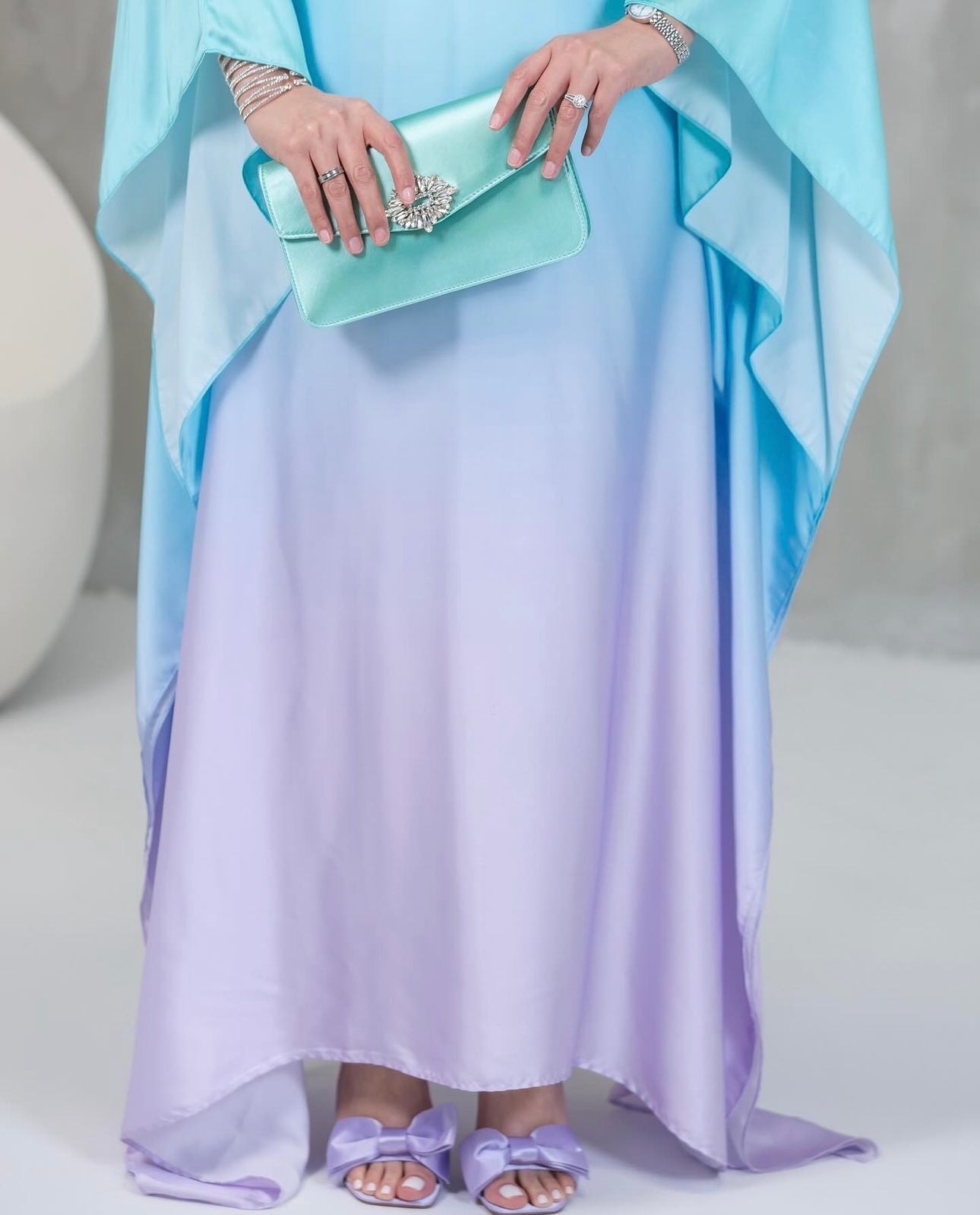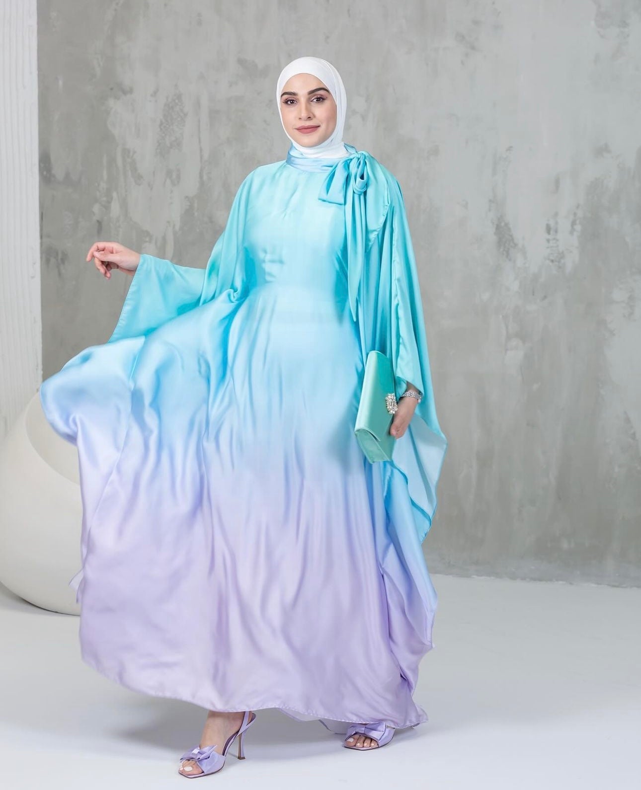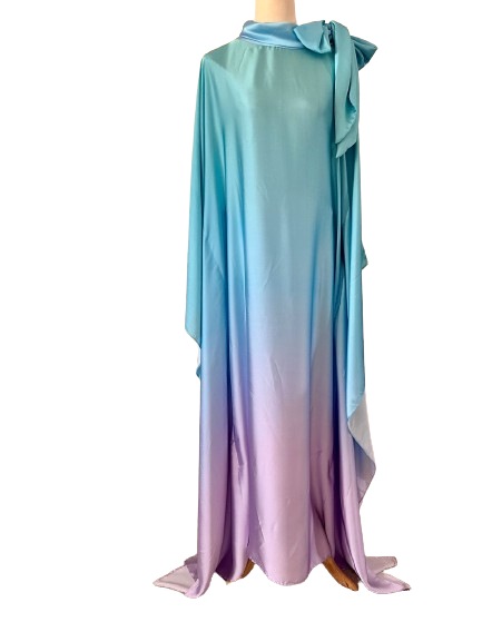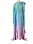 Muhra kaftan features a loose and flowy silhouette, with wide sleeves that add to its relaxed and easy-going vibe. The Rainbow ombre color is attractive and refreshing, creating a sophisticated and feminine look. The lightweight chiffon silk material drapes beautifully and is perfect for warm weather, while the oversized design ensures that you stay comfortable and relaxed. You can pair it with some heels and jewelry for a more formal occasion. Overall, this kaftan is a versatile and chic addition to any wardrobe.