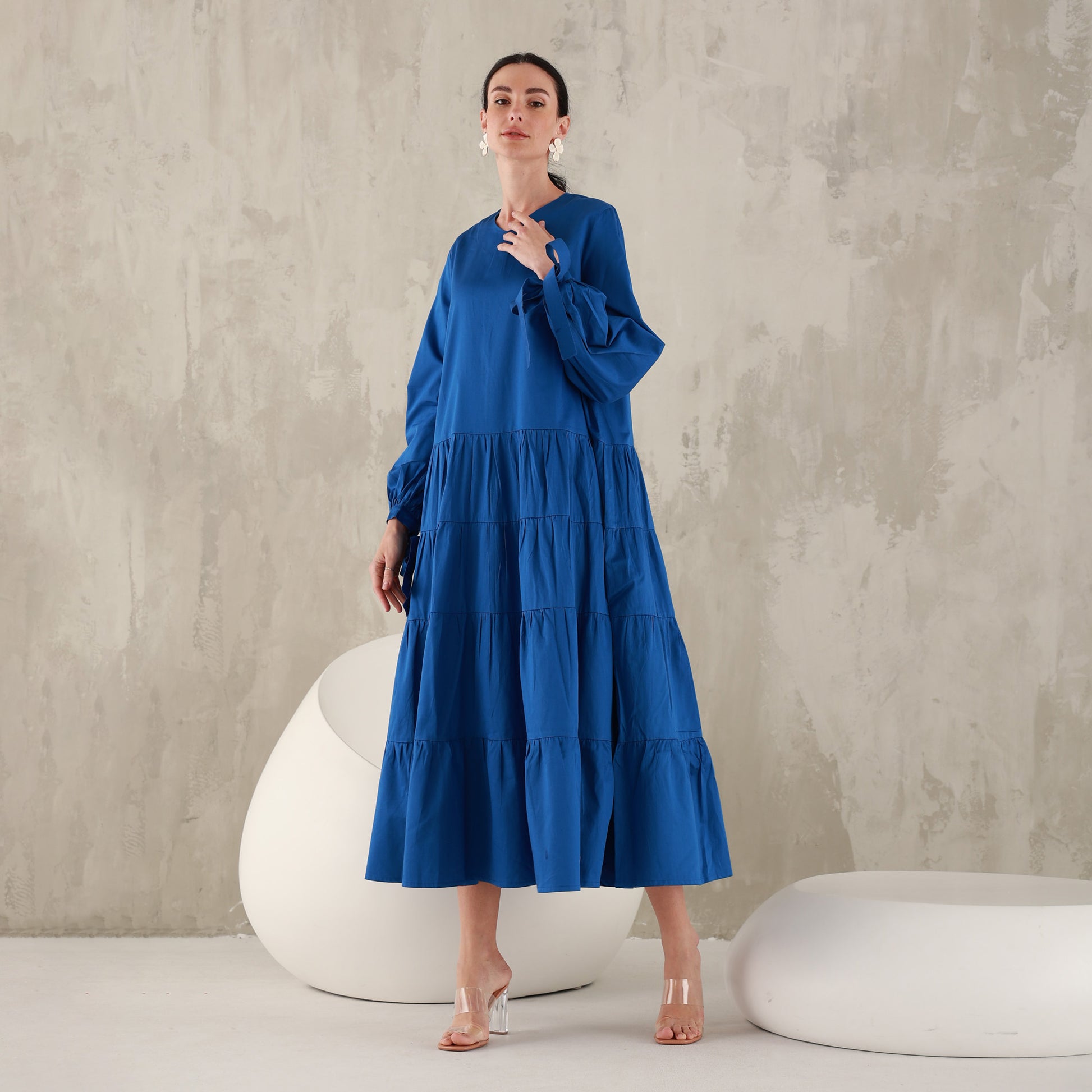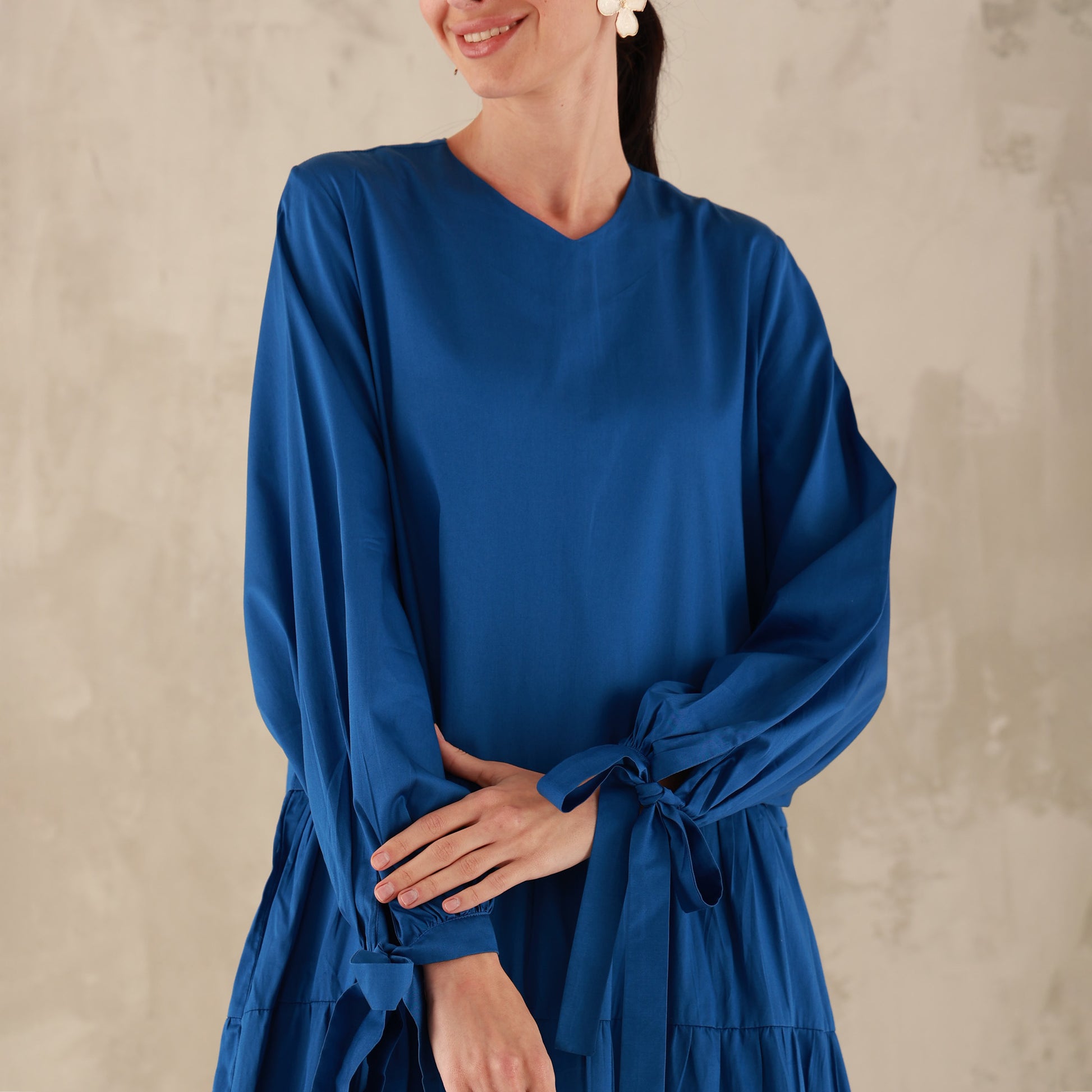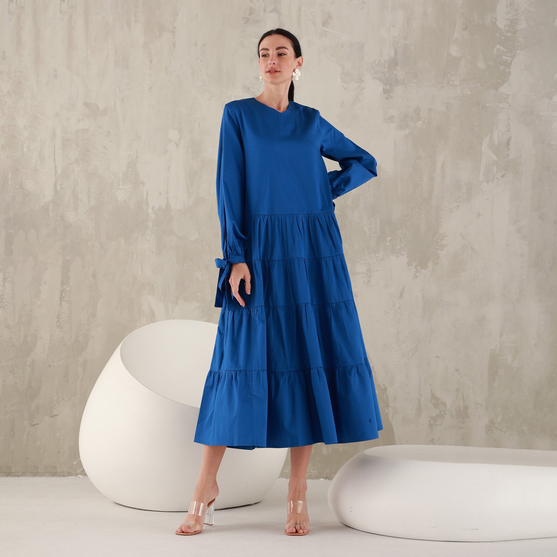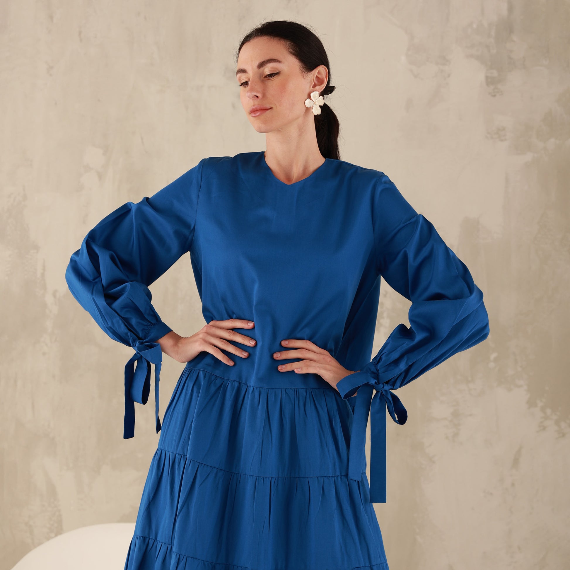 Riviera Dress represents relaxed, laidback femininity with effortless styling. Tailored from cotton, the multi-tiered dress has a soft feel and breathable finish for hot summer days. Its wrist cuffs with ribbon give a practical, smart-casual appeal. Match it with high heels or white sport shoos.