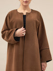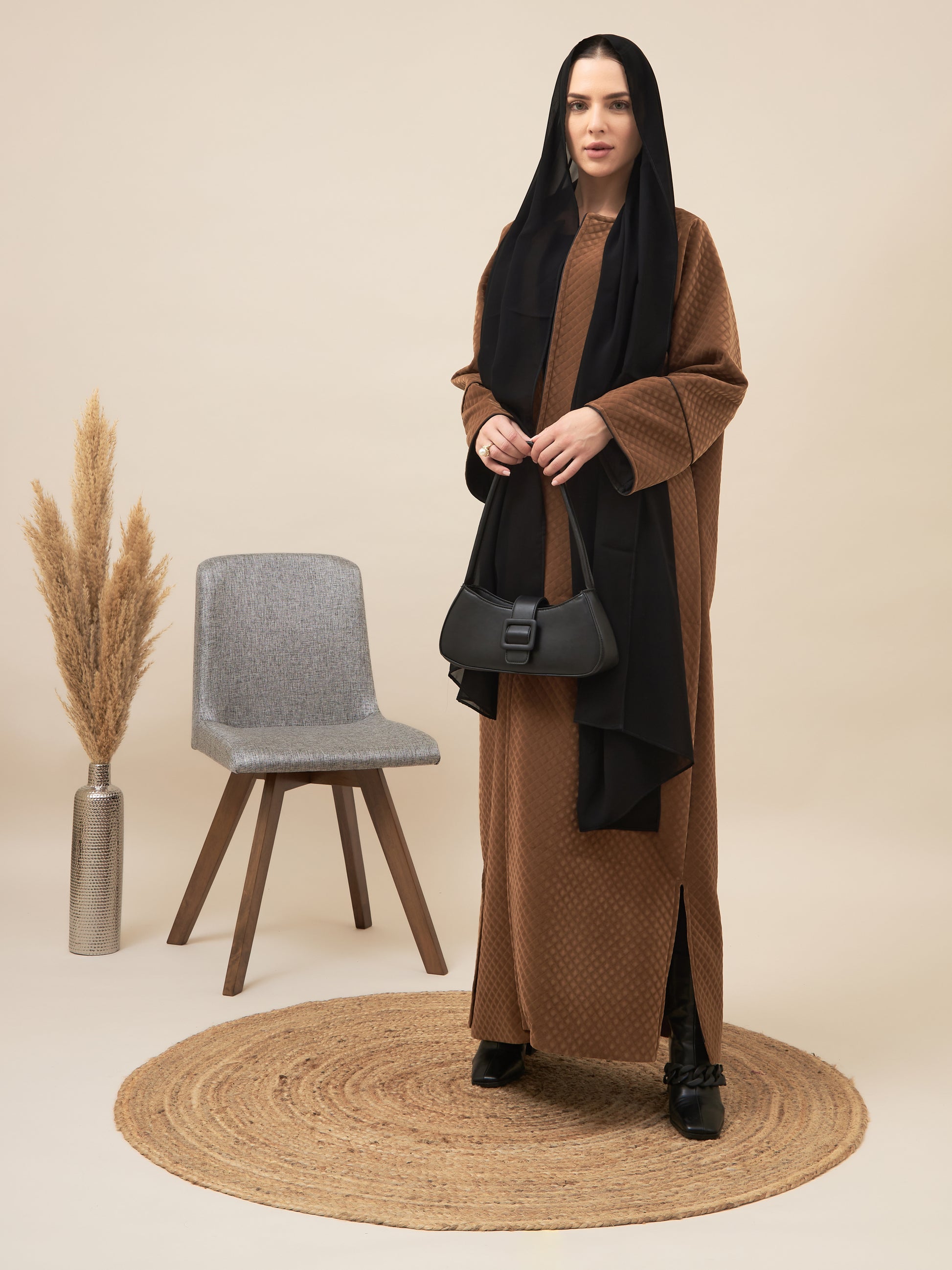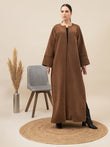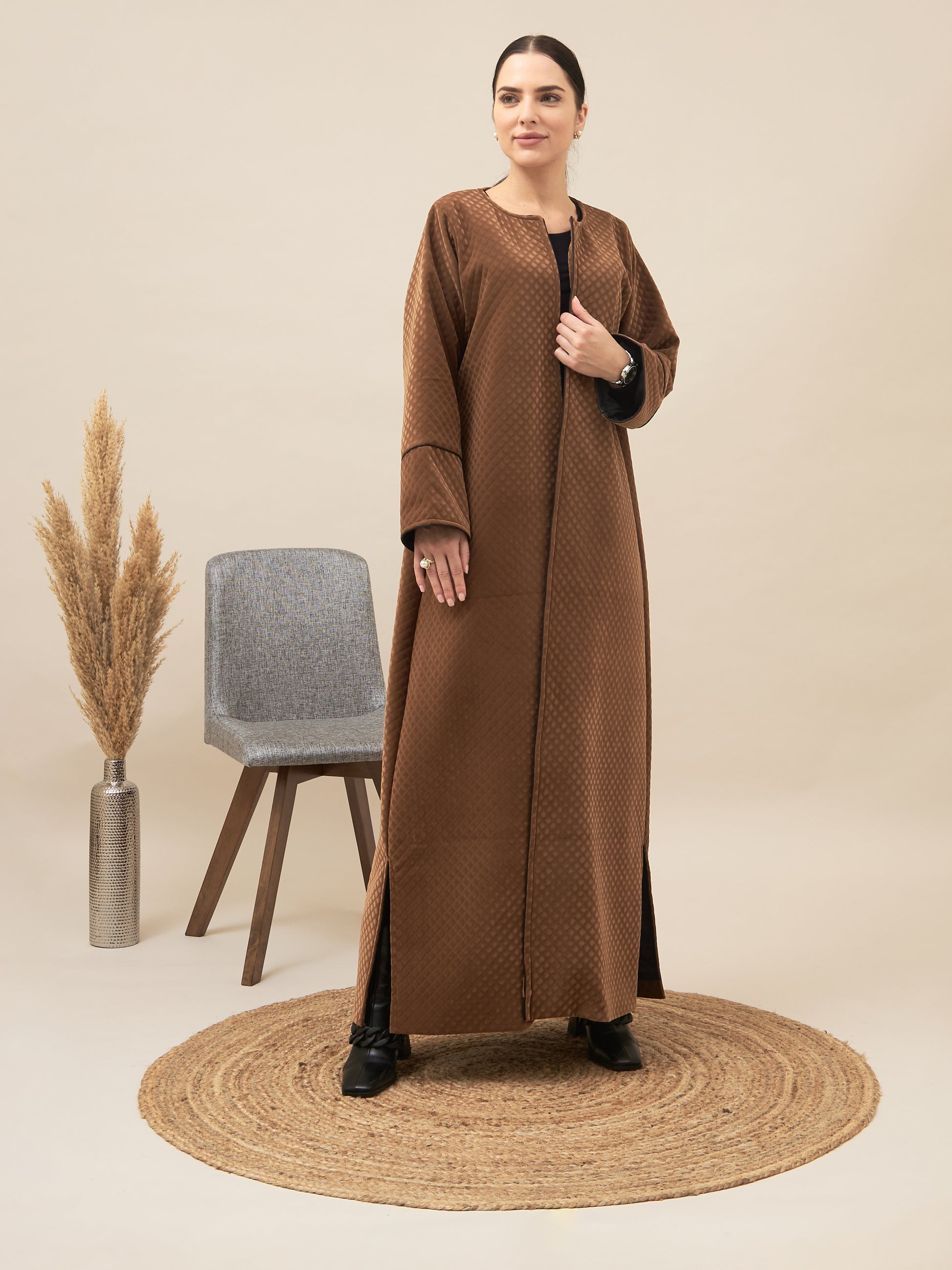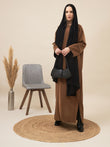 From the queens elegance we inspired this Abaya design using a soft and warm velvet fabric. And to complete the luxury touch we added a golden satin edge